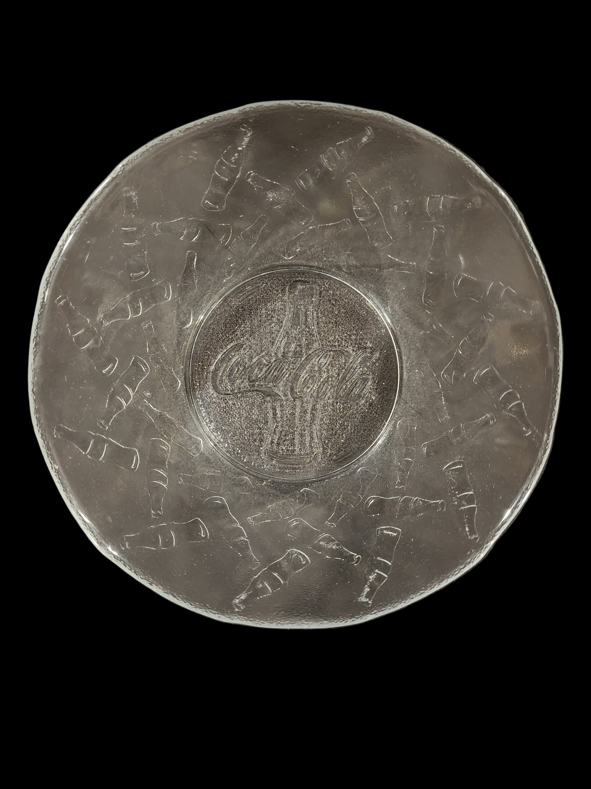 Coca-Cola Bottle Embossed Clear Glass Bowl 6 1/8" Diameter in good condition.