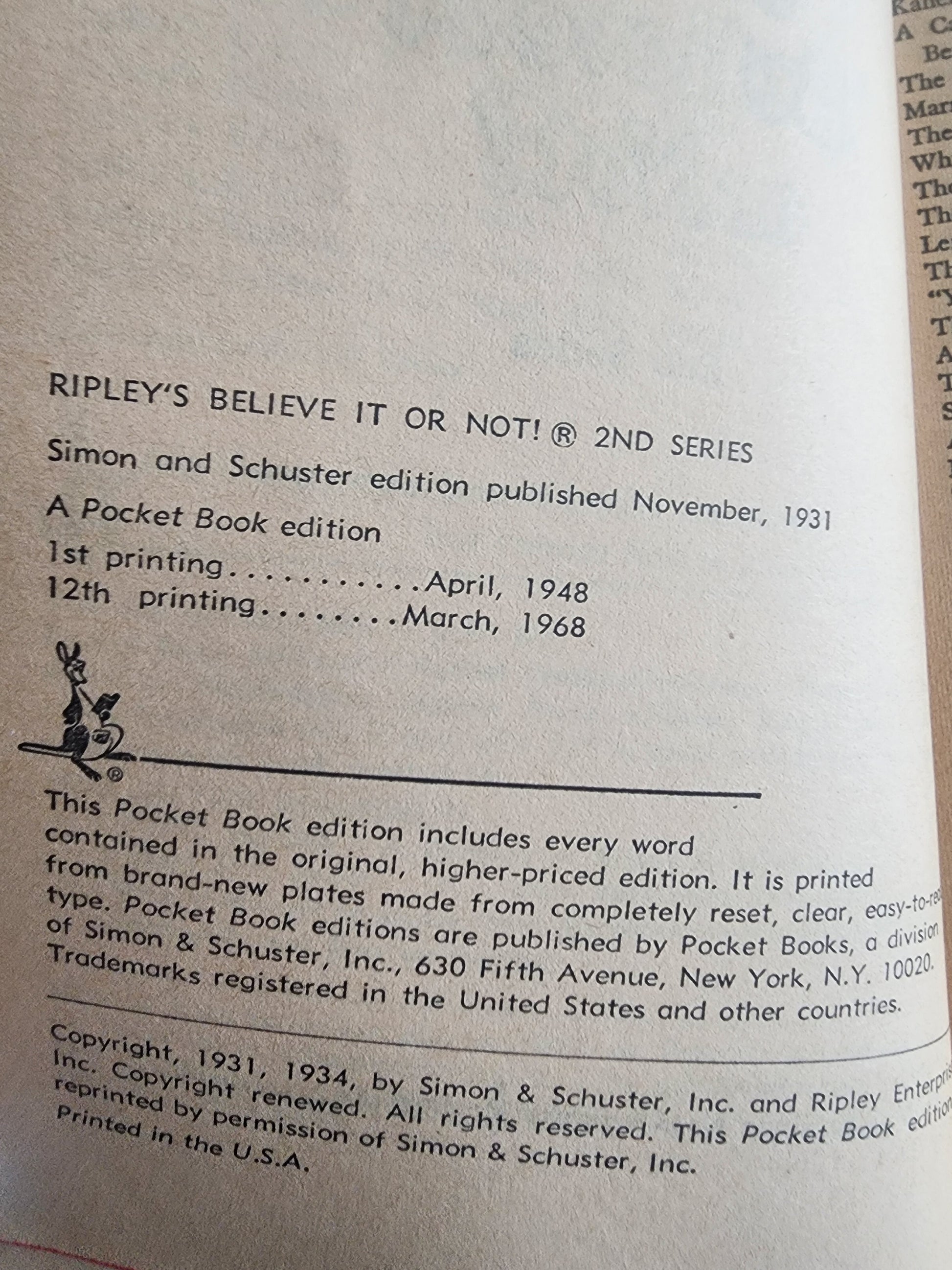 1968 RIPLEY'S BELIEVE IT Or NOT 2nd Series. Pocket Paperback