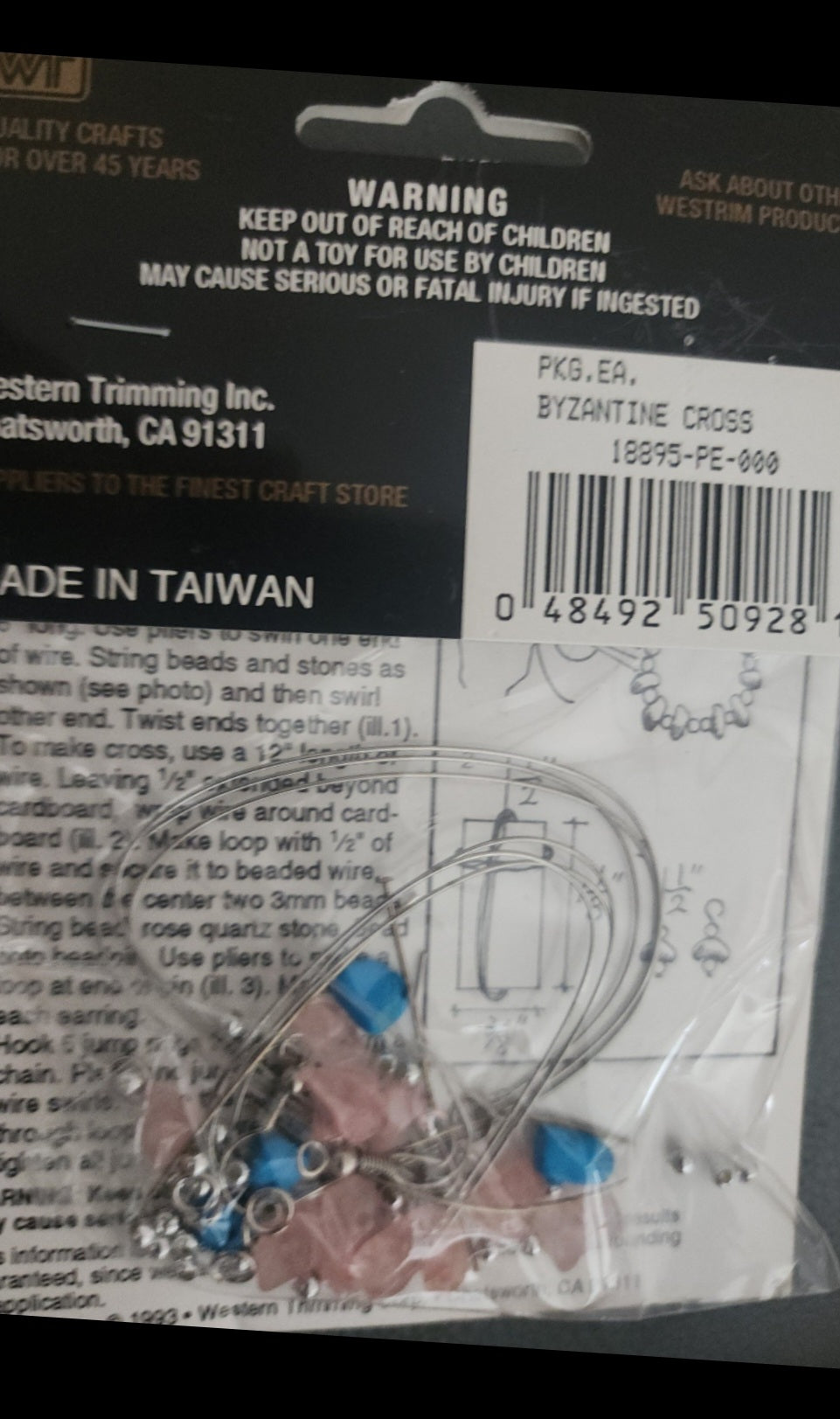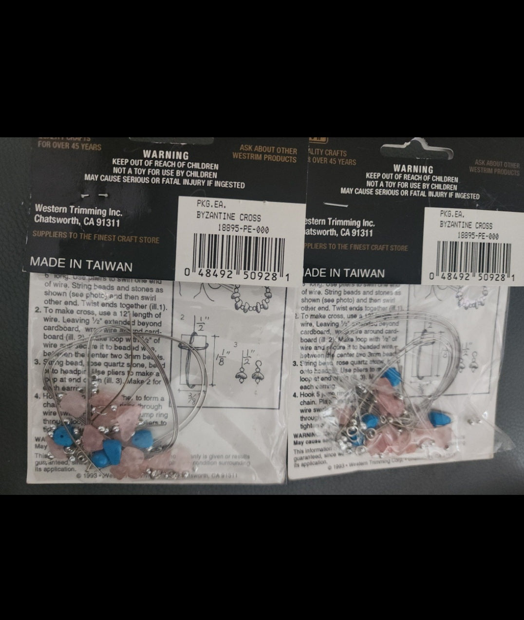 These earring kits harken back to the artistry of the Byzantine Empire, featuring ornate cross charms as their centerpiece. Each kit includes materials to create a pair of earrings, likely featuring beads and wire in hues of gold, blue, and peach, complementing the antique bronze finish of the crosses. Embrace the rich history and symbolism of Byzantine design while crafting your own unique jewelry with these intriguing kits.