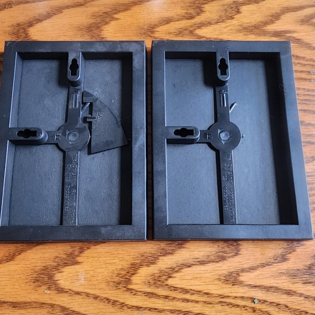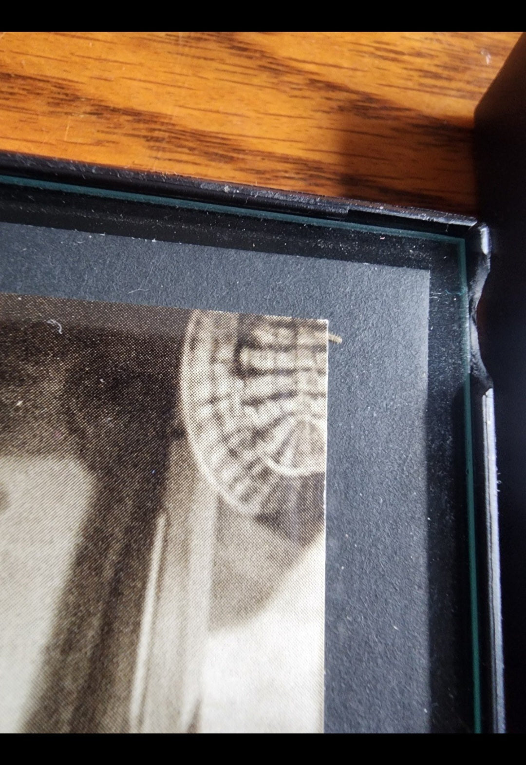 Two 4x7 framed pictures, Three Stooges and Laurel & Hardy. Likely postcards, but never opened to confirm. Frames have minor damage to the plastic (see photos).