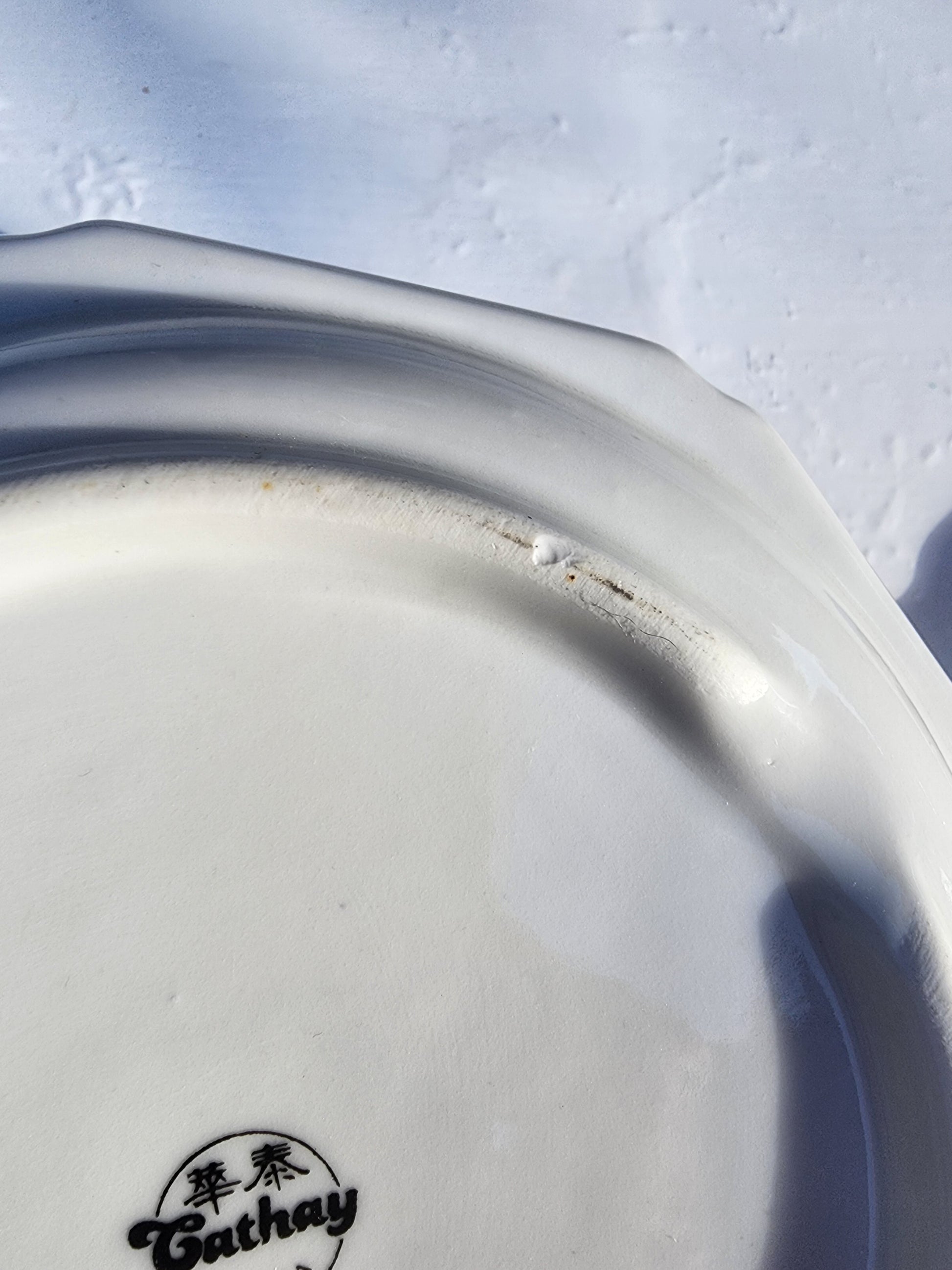 8" Asian Tatung Imari Cathay Octagon Covered Casserole Serving Bowl China. In overall good condition has a tiny chip on bottom of dish. This is a 1970s dish and has paint wear.