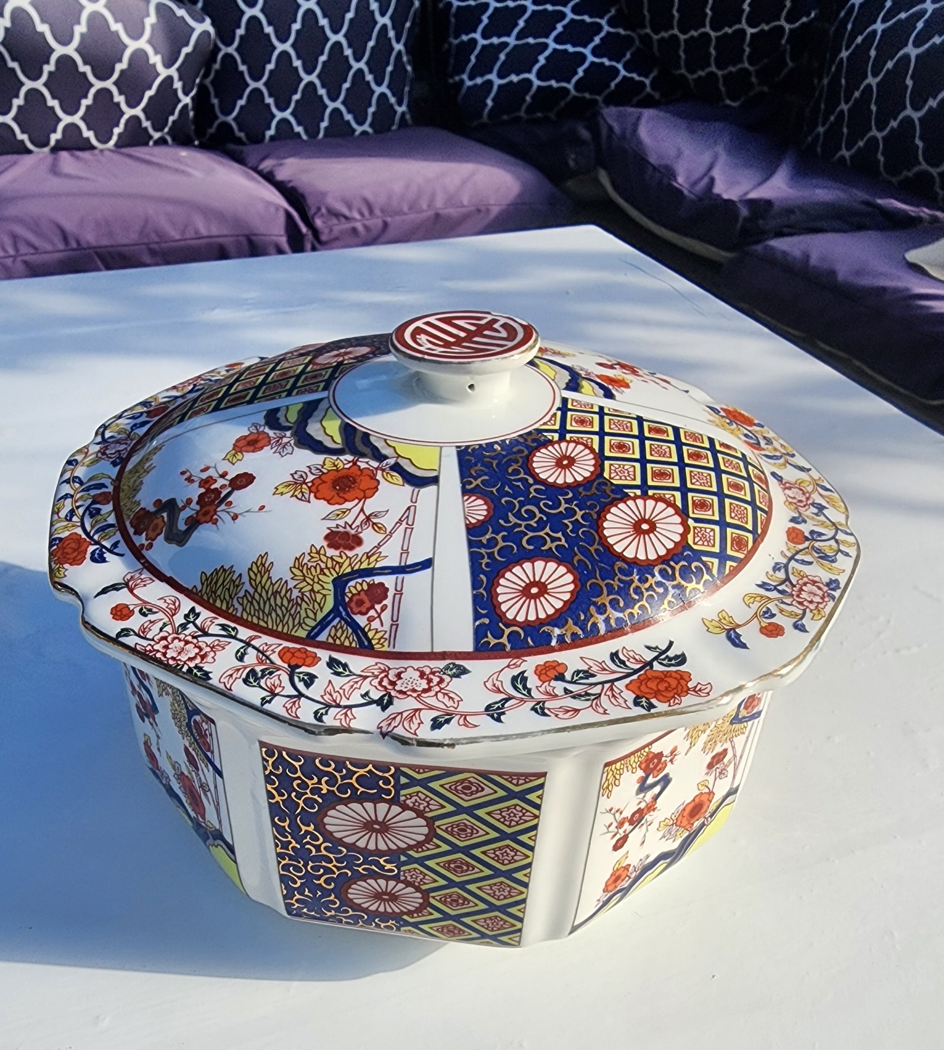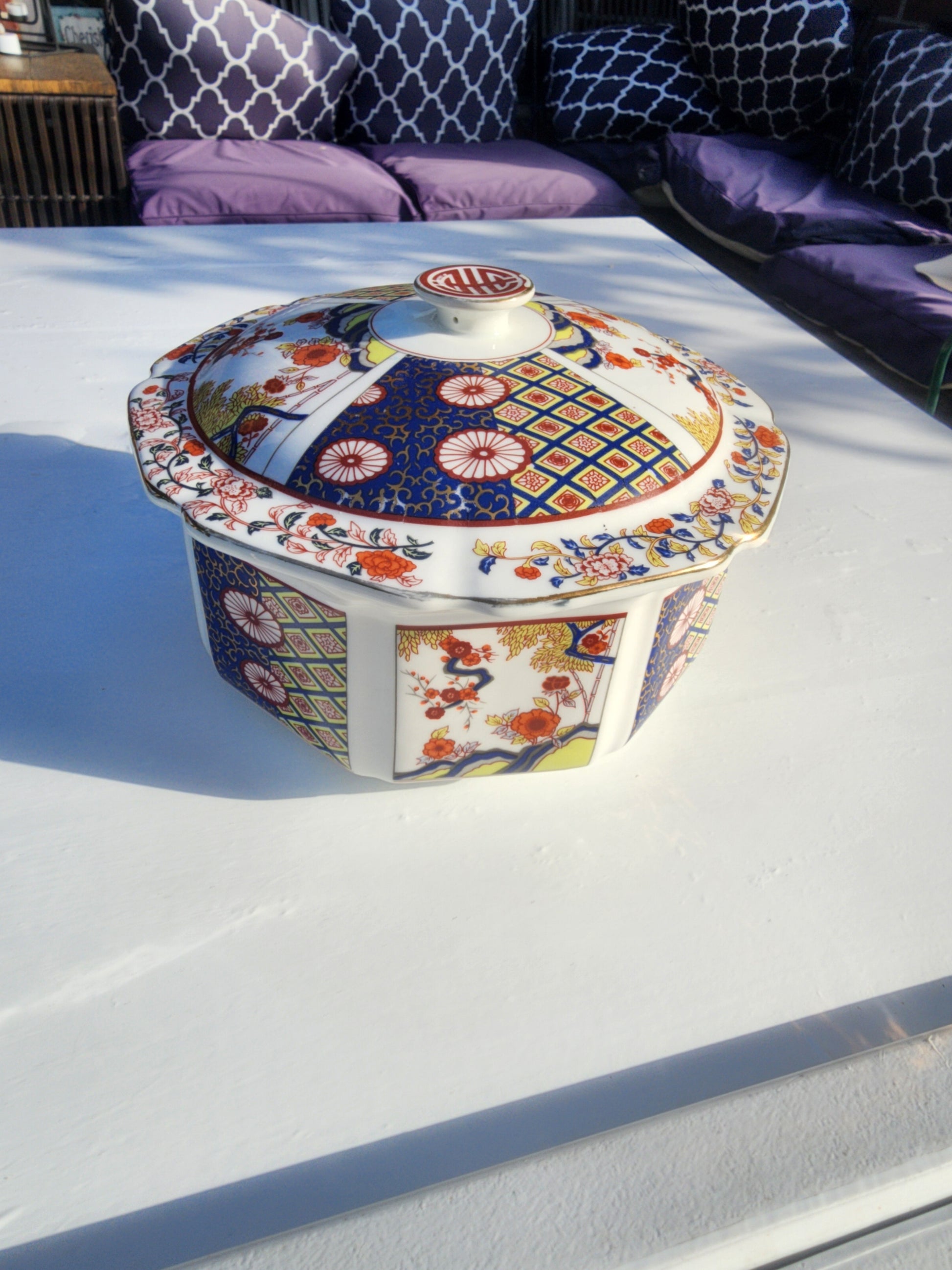 8" Asian Tatung Imari Cathay Octagon Covered Casserole Serving Bowl China