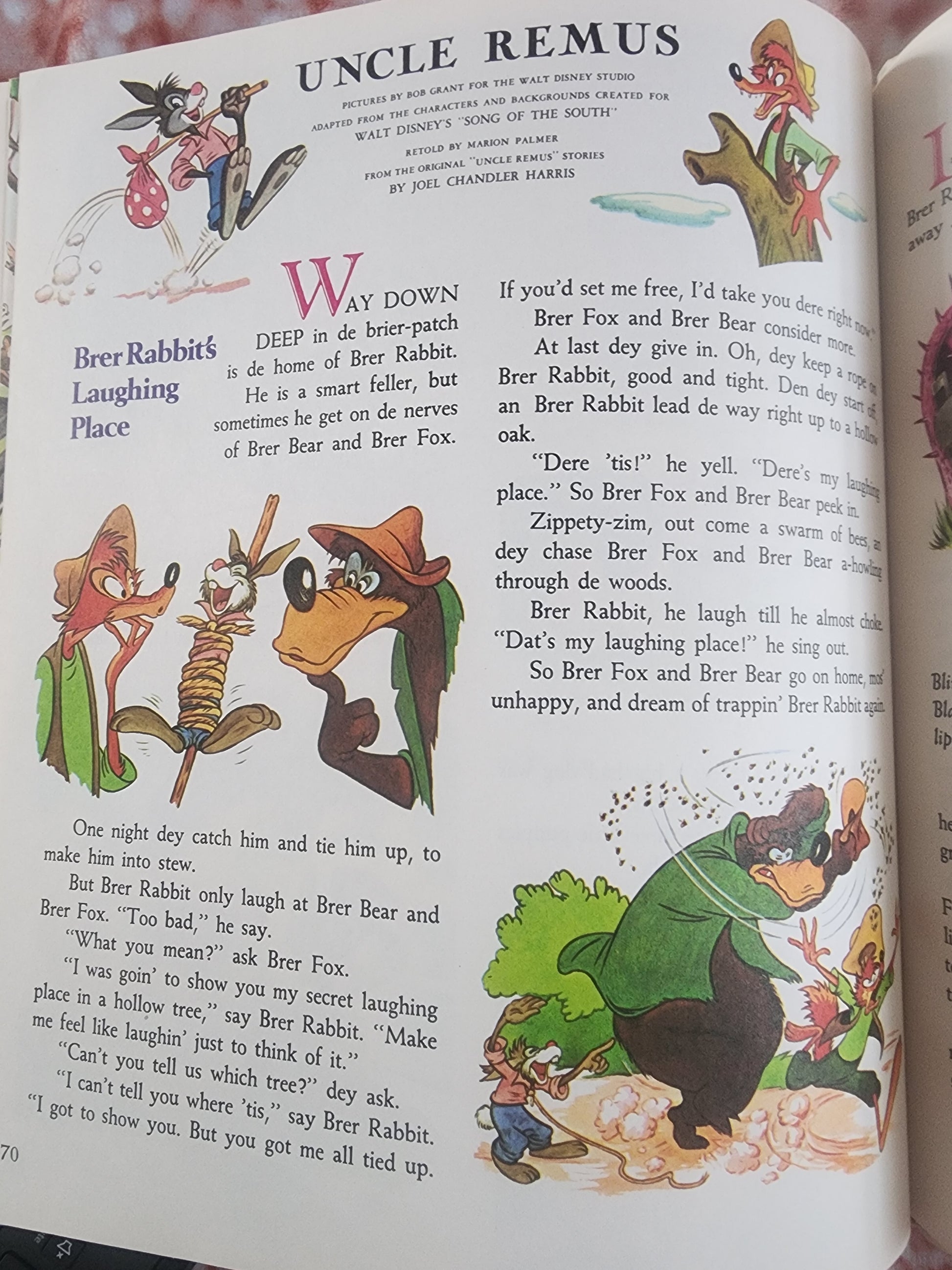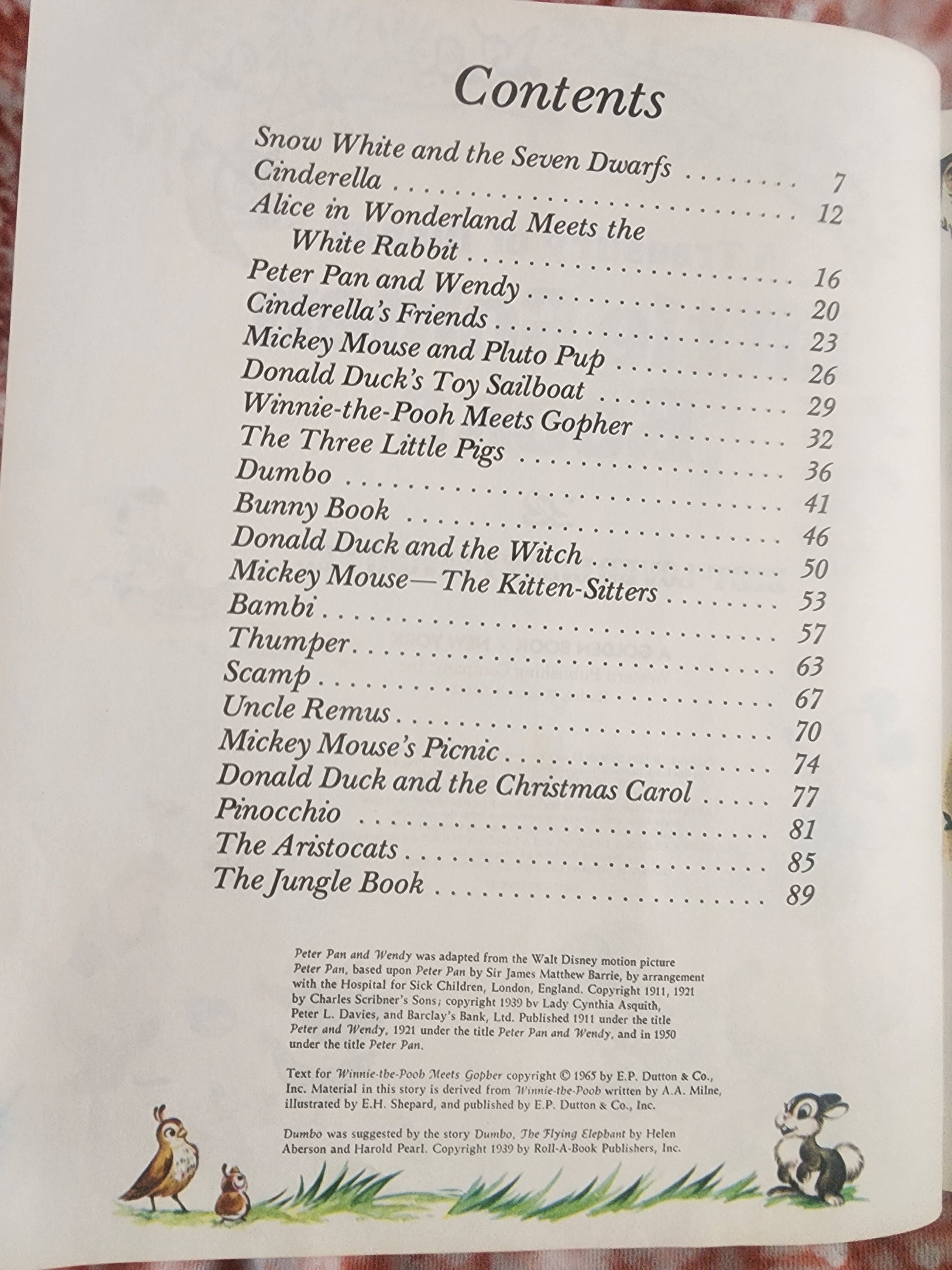 Treasury containing twenty-two best-loved complete stories and characters such as Mickey Mouse, Donald Duck, Bambi, Winnie the Pooh, Peter Pan, Snow-white, and Uncle Remus. Book in good condition has a name wrote in book.