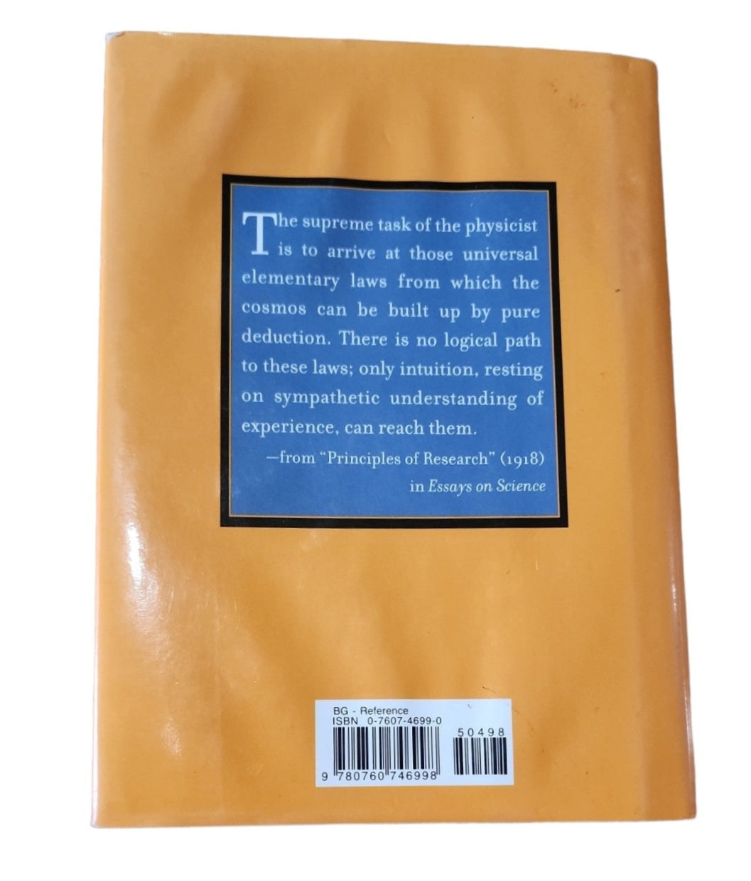 Originally copyrighted in 1934 by Covici-Friede, Inc., this particular edition was published by Barnes & Noble Books in 2004, by arrangement with Philosophical Library, Inc. It includes thought-provoking essays such as "The Principles of Research," from which a famous quote is featured on the back cover: "The supreme task of the physicist is to arrive at those universal elementary laws from which the cosmos can be built up by pure deduction. There is no logical path to these laws; only intuition, resting on a sympathetic understanding of experience, can reach them."