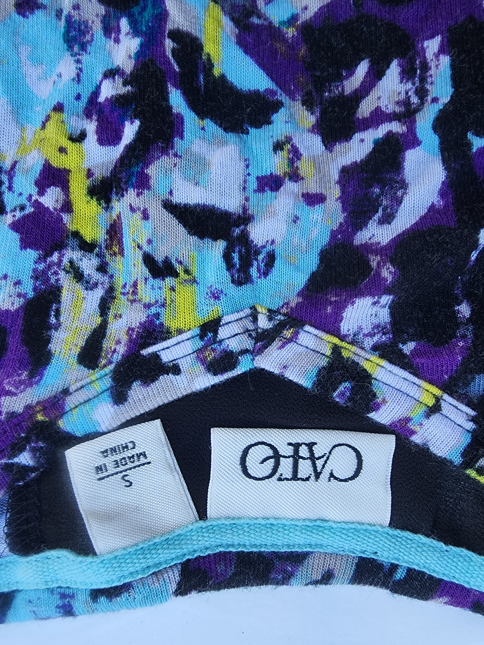 <span;>Elevate your everyday style with this vibrant CATO abstract print tunic top! Perfect for adding a pop of color to your wardrobe, this women's size Small blouse features a unique all-over abstract pattern in shades of purple, blue, yellow, black, gray and white
