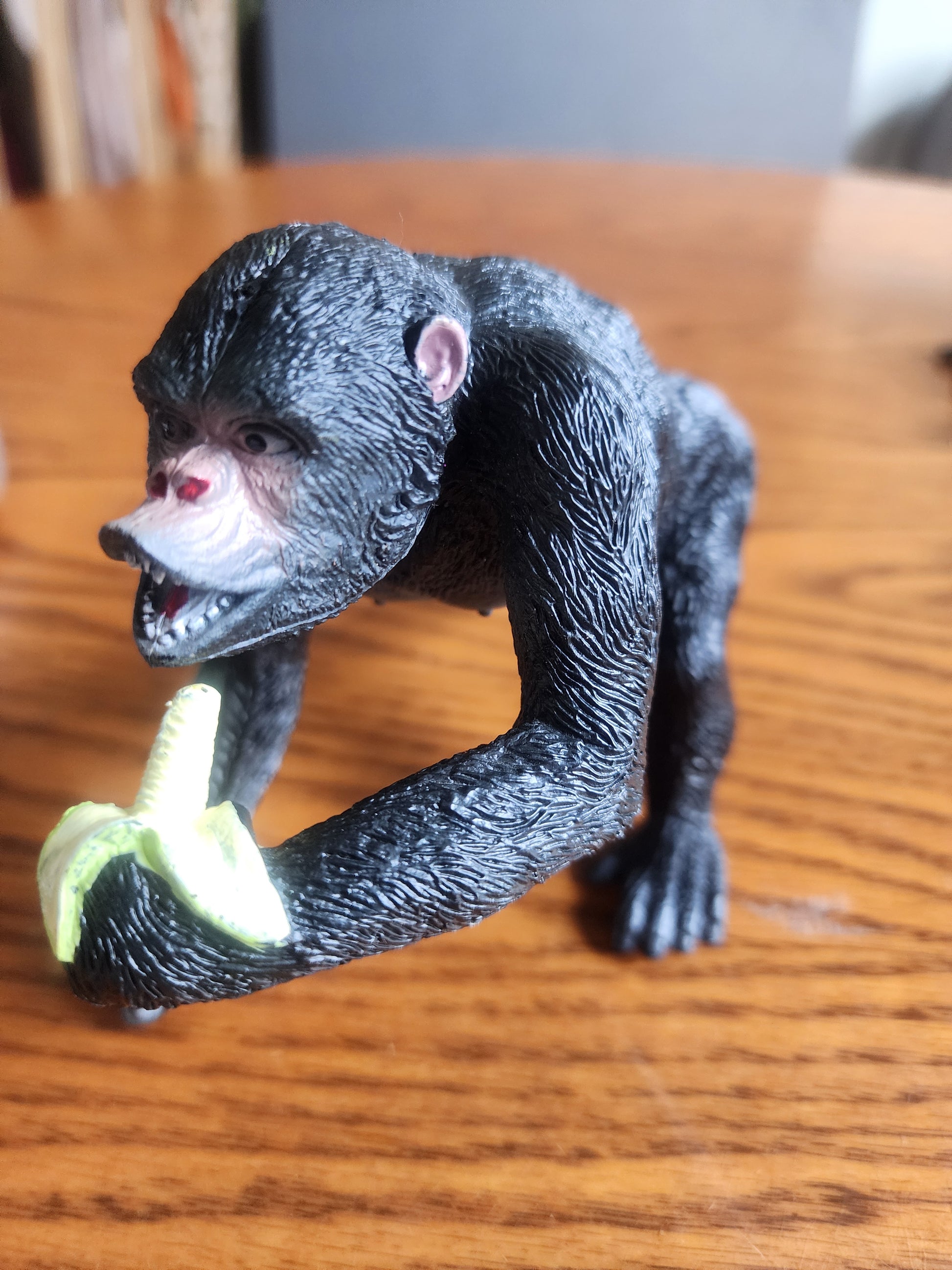 Chimpanzee with Banana – Realistic Wildlife Figurine