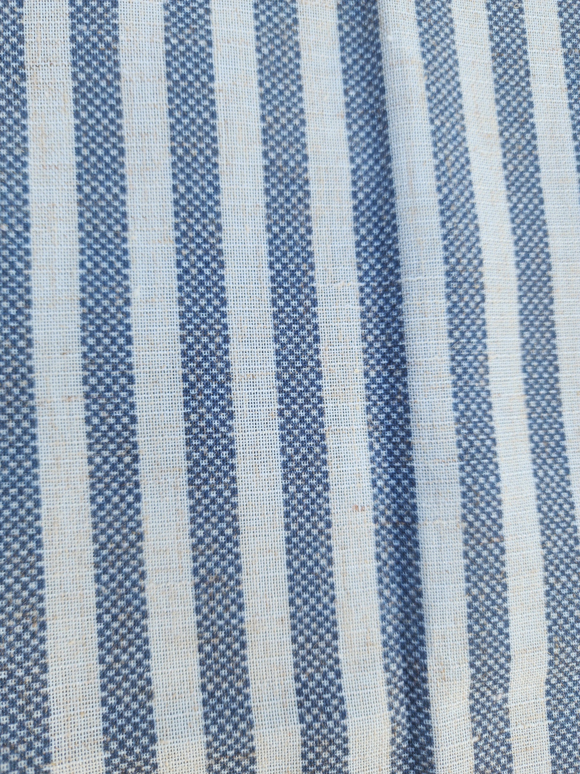 Coastal or Farmhouse Blue & cream Striped Curtains - Short Panels (Set of 2)