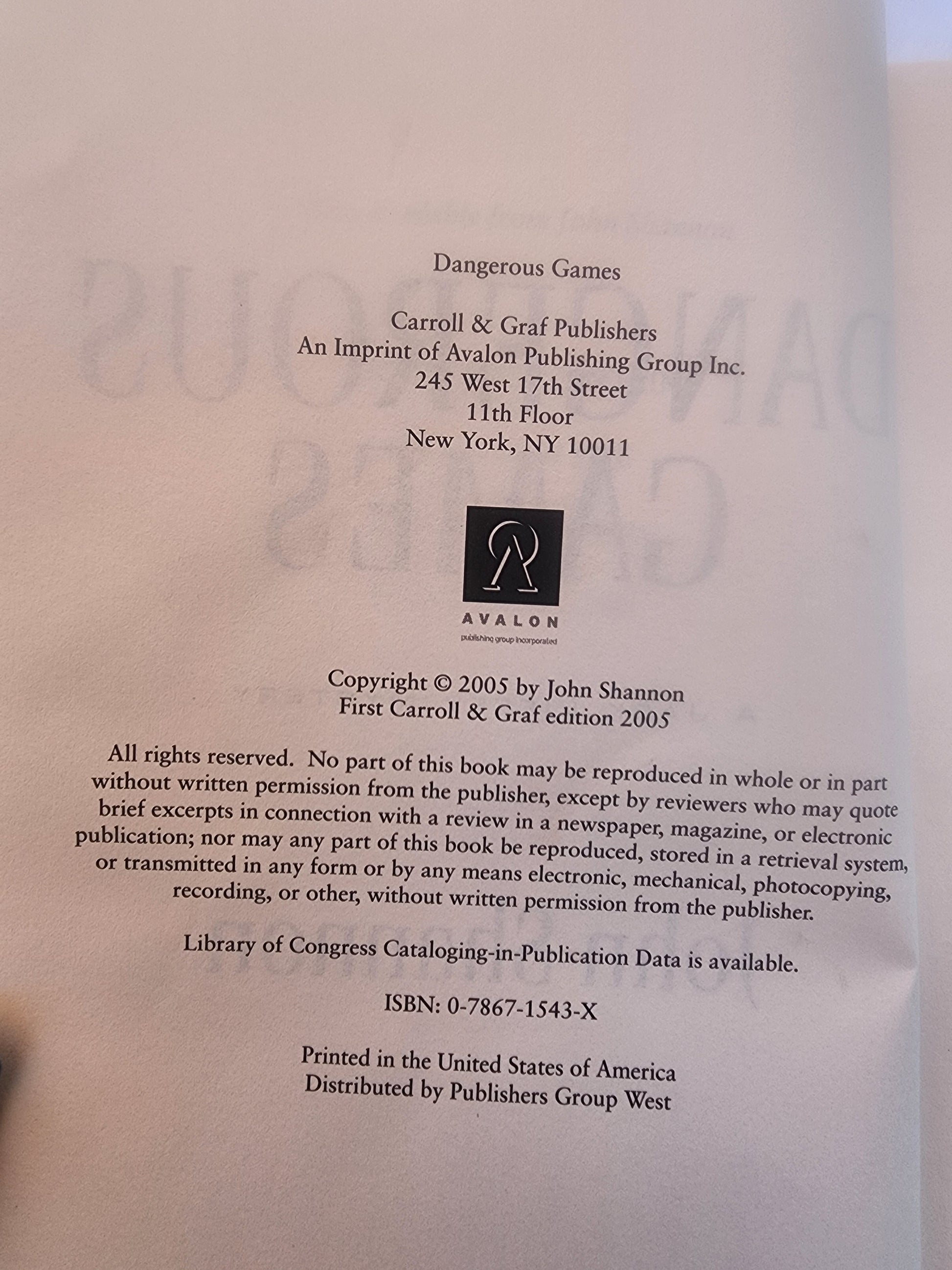 <span;>Dive into the thrilling world of Jack Liffey with "Dangerous Games," a gripping mystery by John Shannon. This hardcover edition (ISBN: 9780786715435) offers a captivating read. Please note this is a former library book and the inside cover has some staining. The rest of the book is in clean condition.