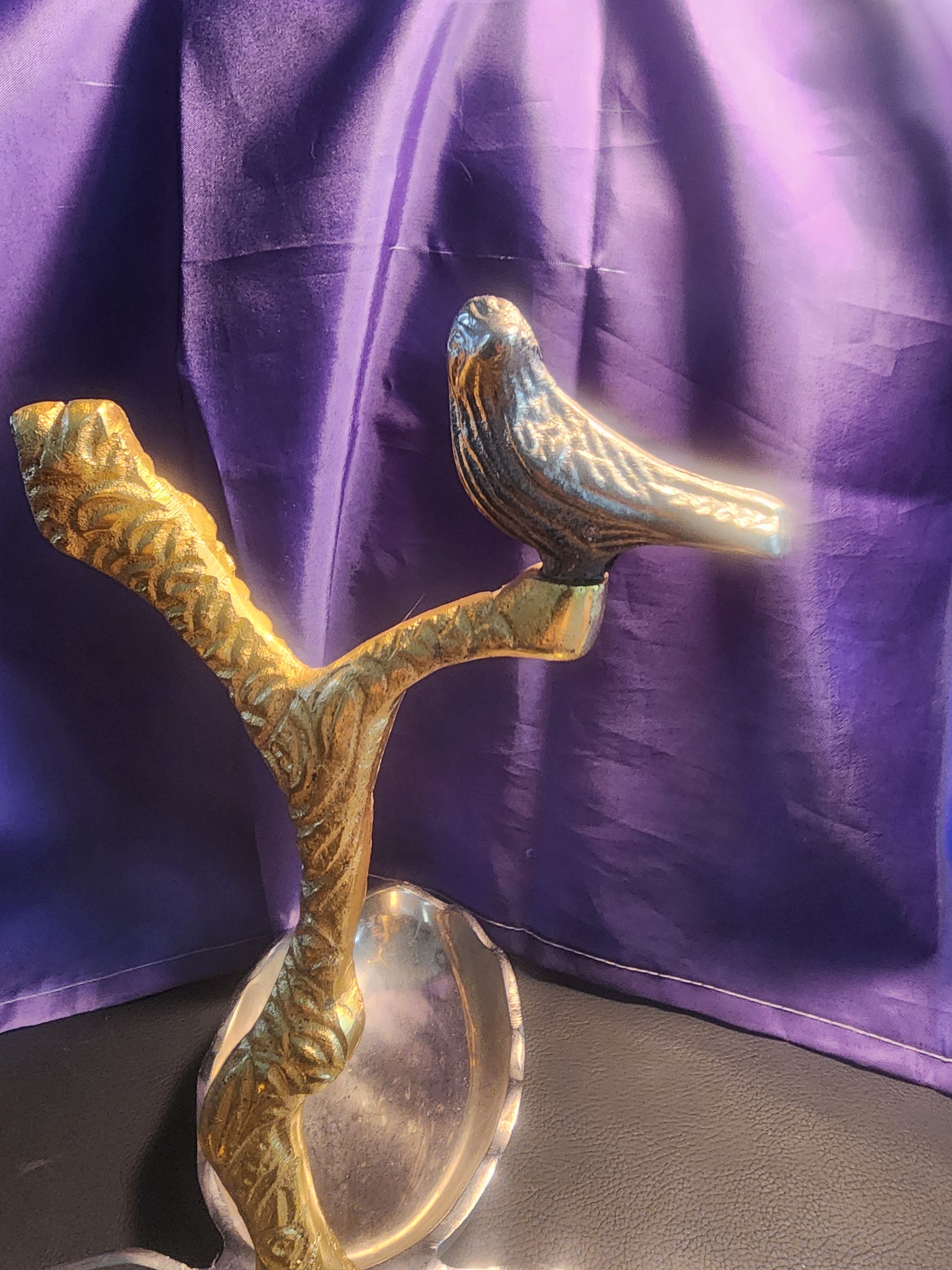 <span;>Add a touch of whimsical elegance to your serving collection with this unique metal divided dish. Featuring a beautifully sculpted tree branch as the central handle and a sweet bird perched on top, this piece is more than just a serving tray – it's a delightful decorative accent for your kitchen or table. Perfect for snacks, appetizers, or even small trinkets. Stands approximately 10.5" tall.
