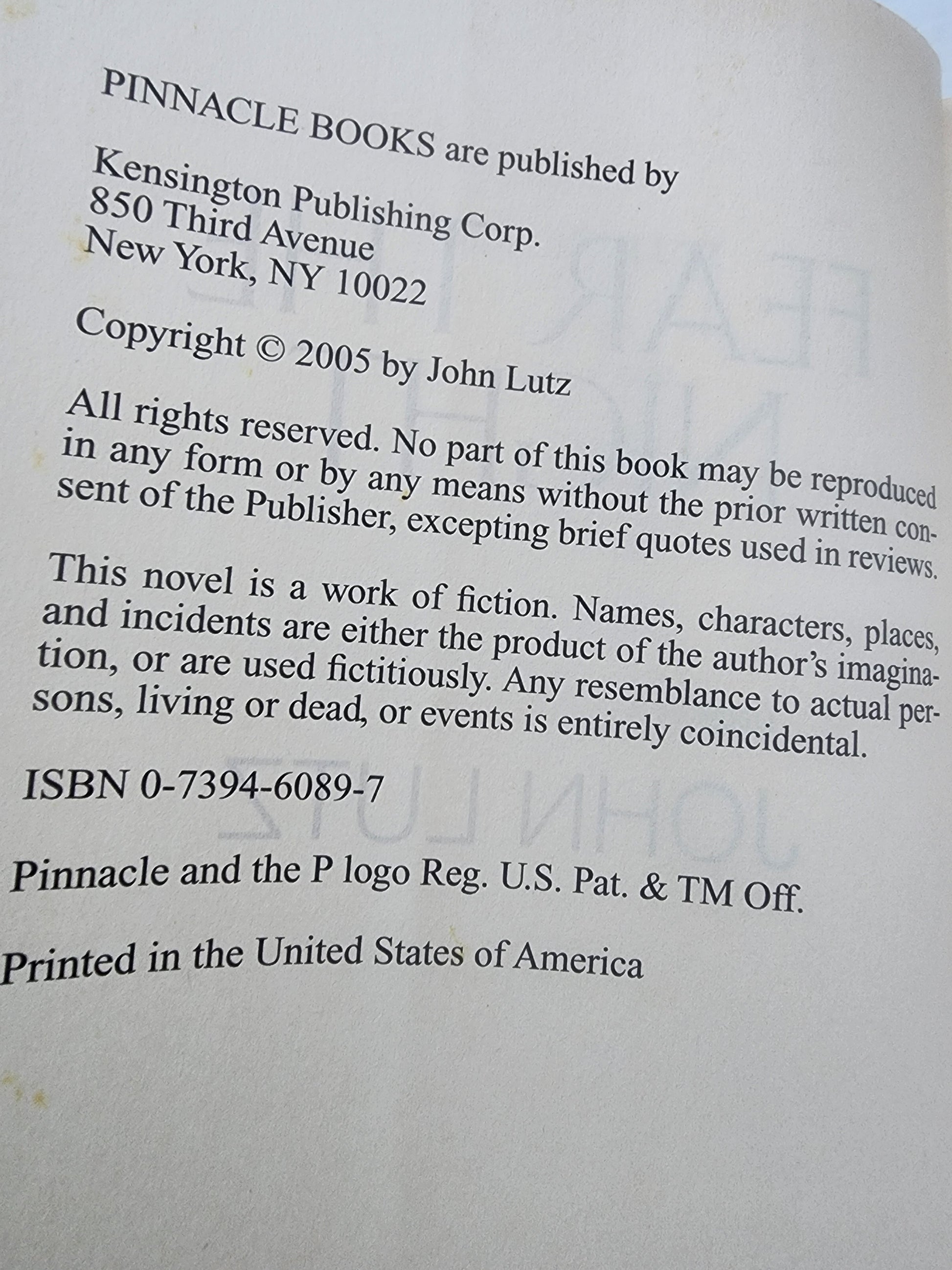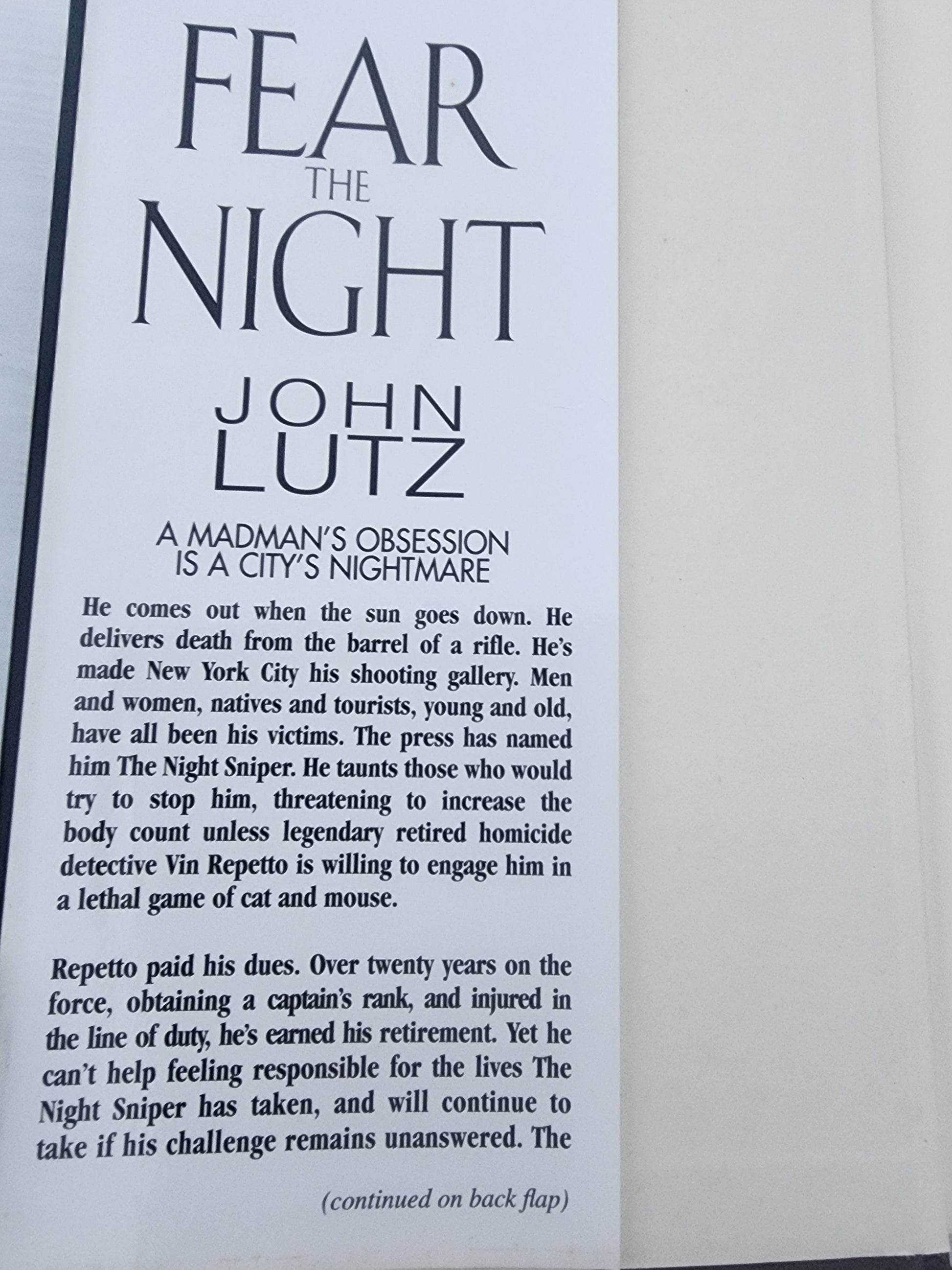 <span;>> This hardback edition of John Lutz's suspenseful thriller, praised by Harlan Coben for its ability to "make you shiver," will keep you on the edge of your seat until the final, heart-stopping confrontation. While showing some gentle signs of time with minor age spotting, the pages within hold a story that remains as sharp and chilling as the night itself. Don't let this one slip into the darkness...