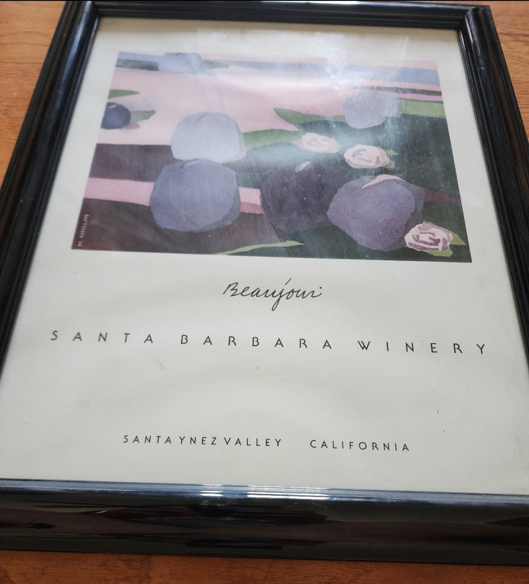 <span;>Framed Poster Beaujour Santa Barbara Winery Santa Ynez Valley California. size of frame aprox 16" x 13" has glass