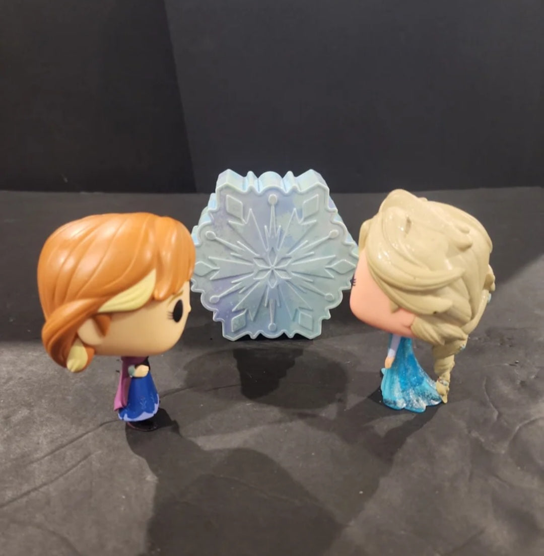 Funk pop Elsa & Anna & Snowflake plastic trinket box. No packaging. Elsa and Anna approx. 4"