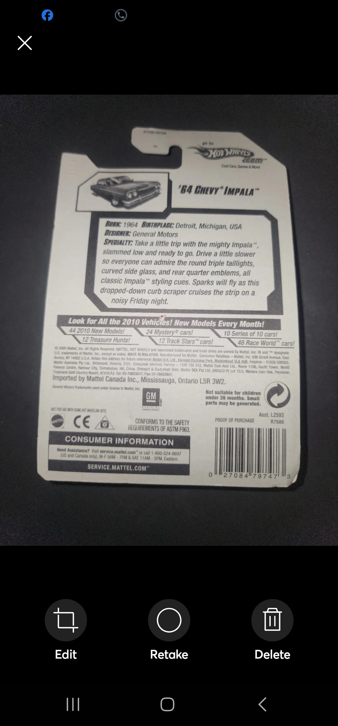HOT WHEELS 1:64, '64 CHEVY IMPALA, 03/10, 161/240, R7586, BECOMING RARE, BIN#5 NIP, has slight wear to package.