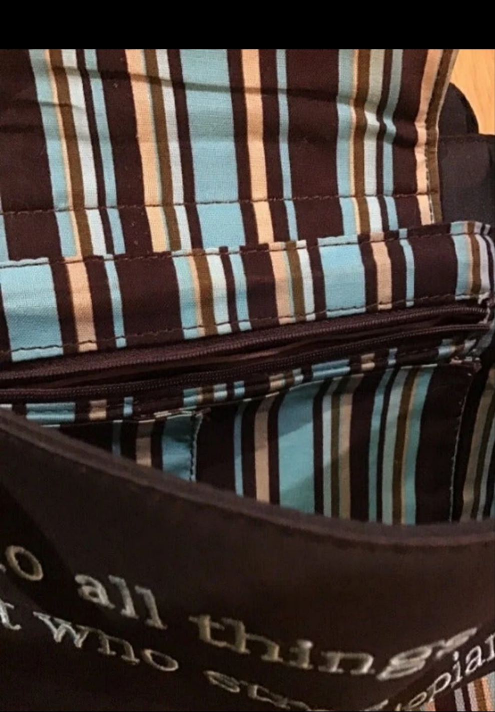 Carry your faith with you wherever you go with this beautiful tote bag! Featuring the inspiring verse Philippians 4:13, this spacious bag is perfect for everyday use. With its stylish design and sturdy construction, it's sure to become your new favorite accessory.