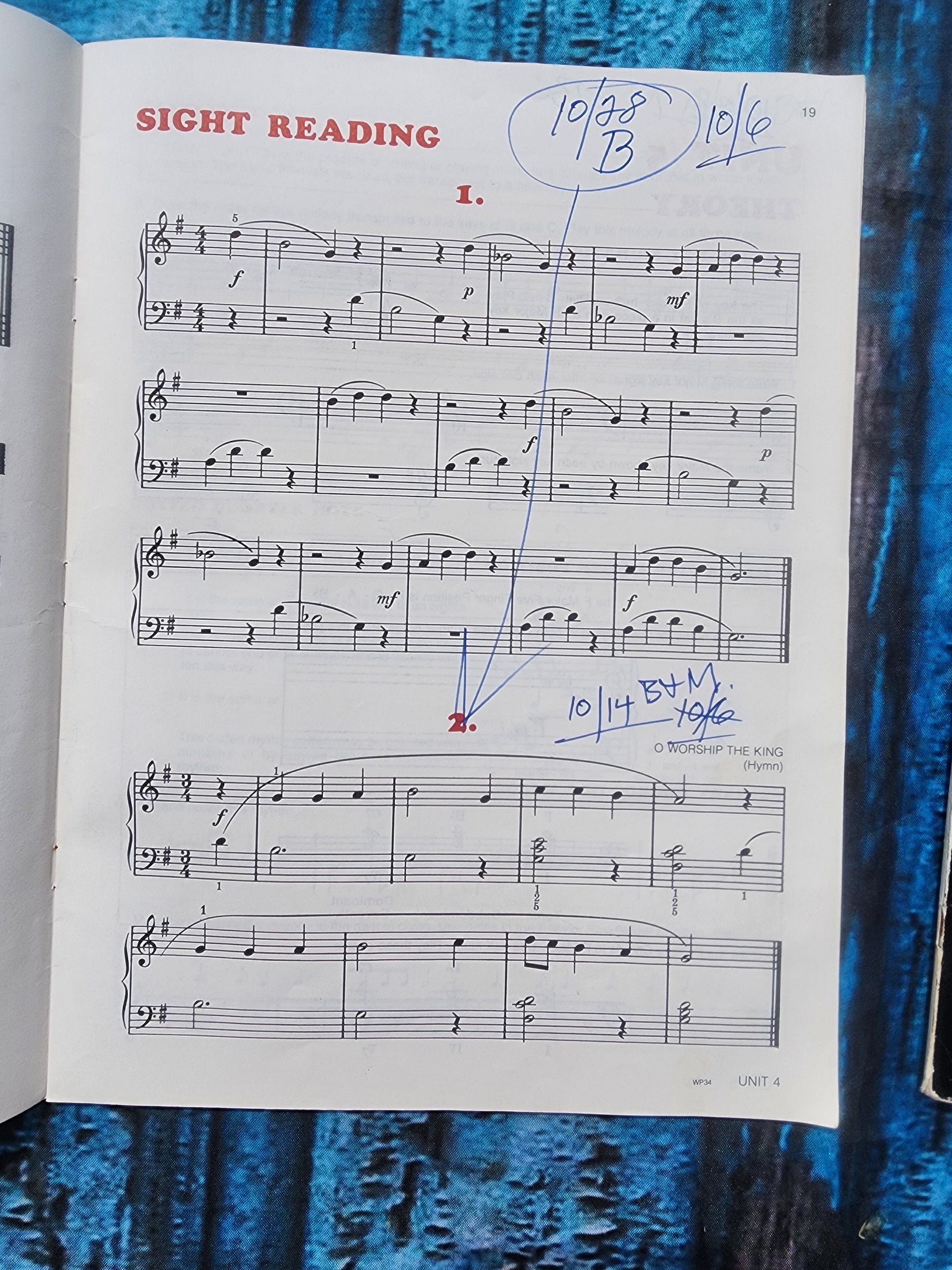 <span;>The Older Beginner Piano Course by James Bastien 1977 Softcover (Level 1) & Musicianship for the Older Beginner by James Bastien (Level 1) both in preowned condition with notions from a piano teacher written inside