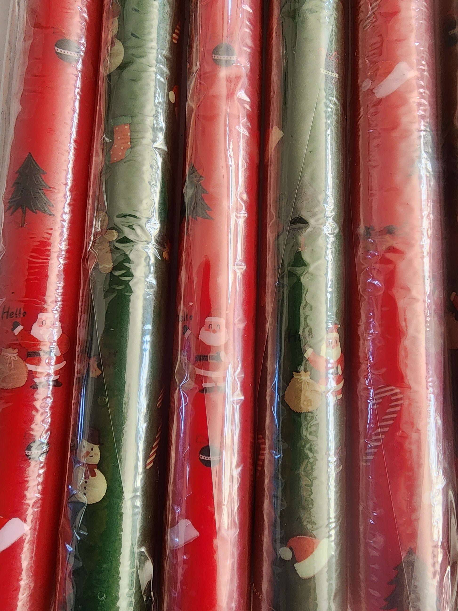 New 12 Christmas 12" taper Candles 6 Red & 6 Green with snowmen. Santa's, Christmas Trees & peppermint.