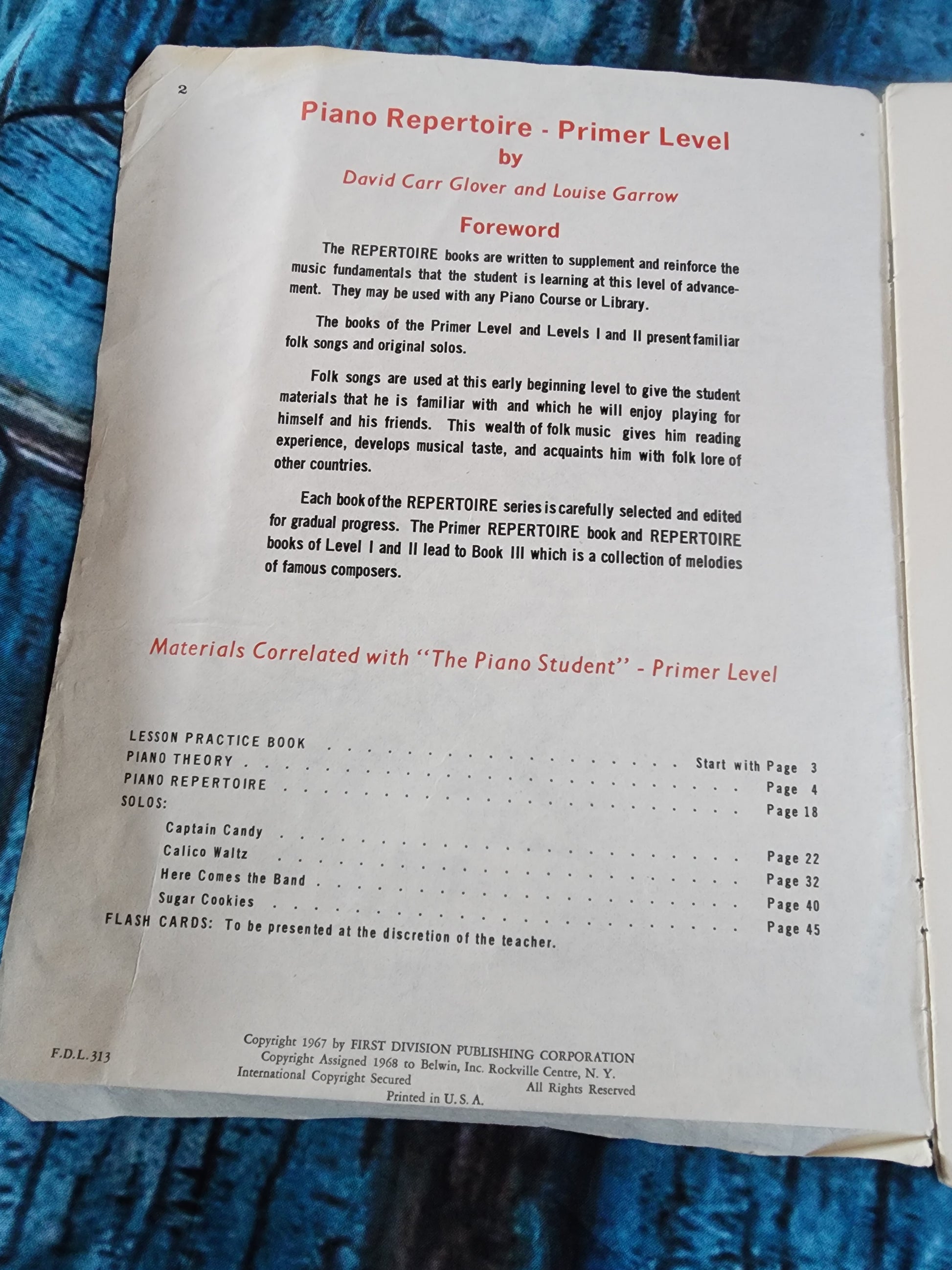 Piano Repertoire David Carr Glover Belwin Sheet Music Book Primer Level 1967