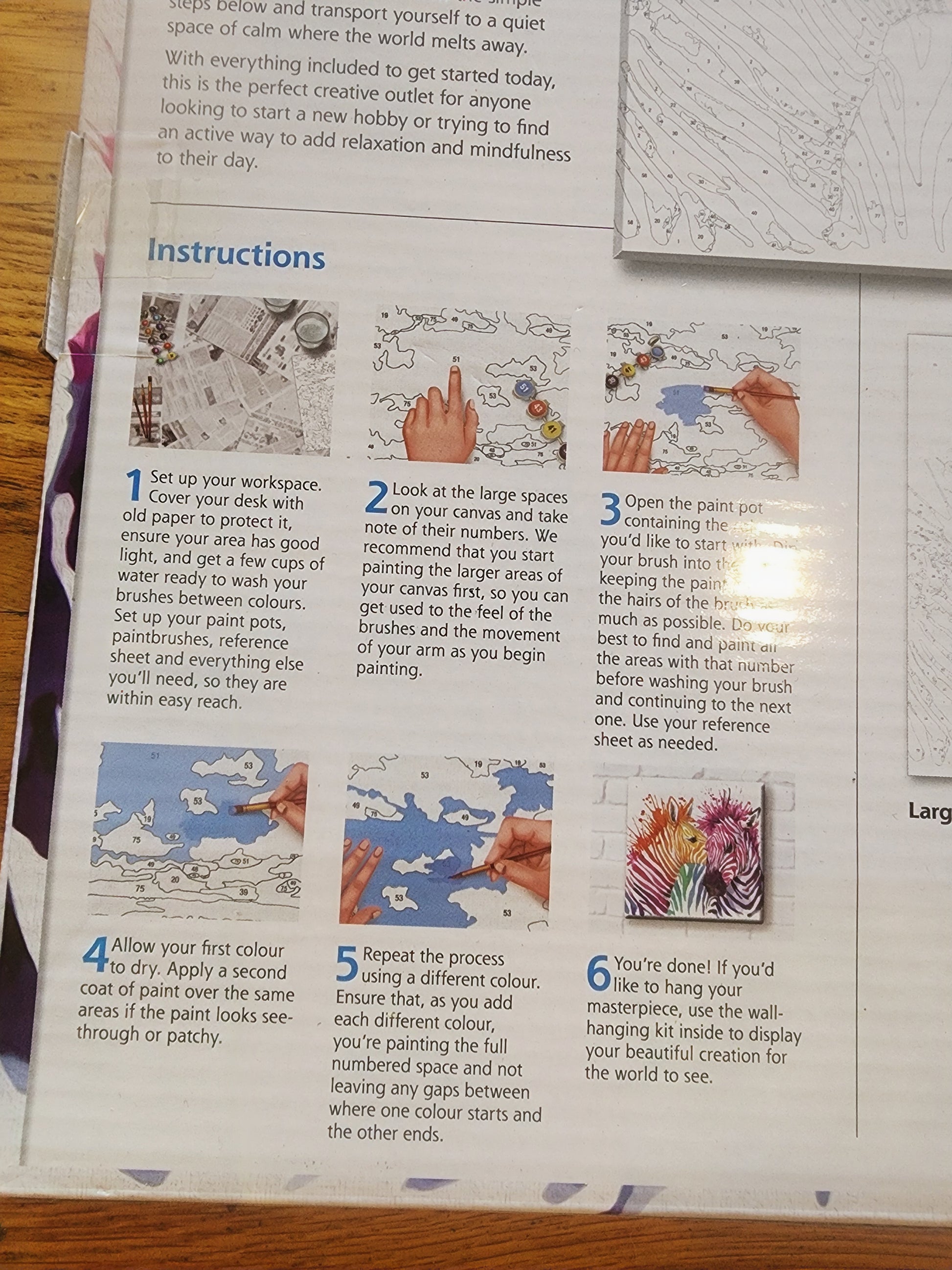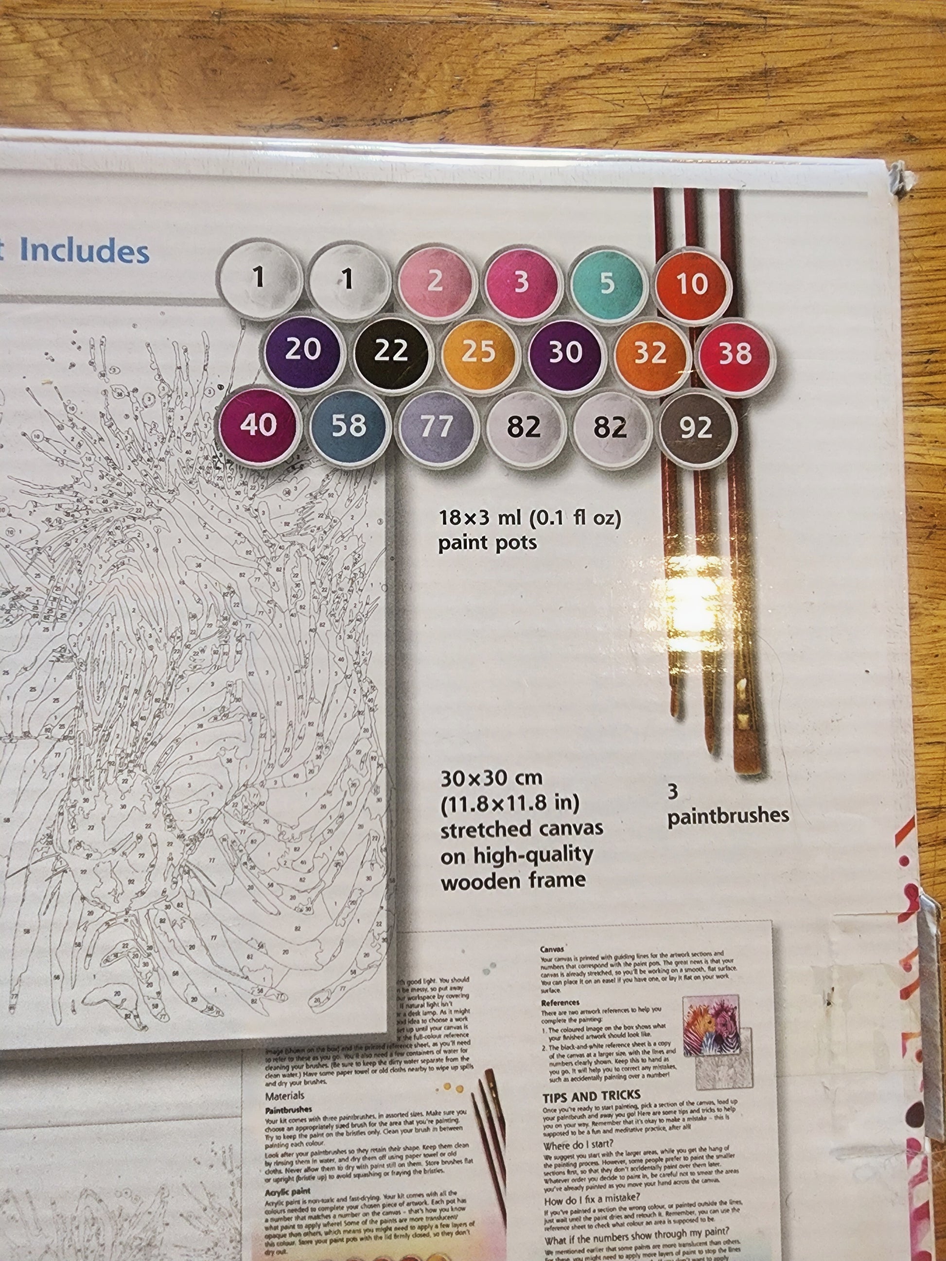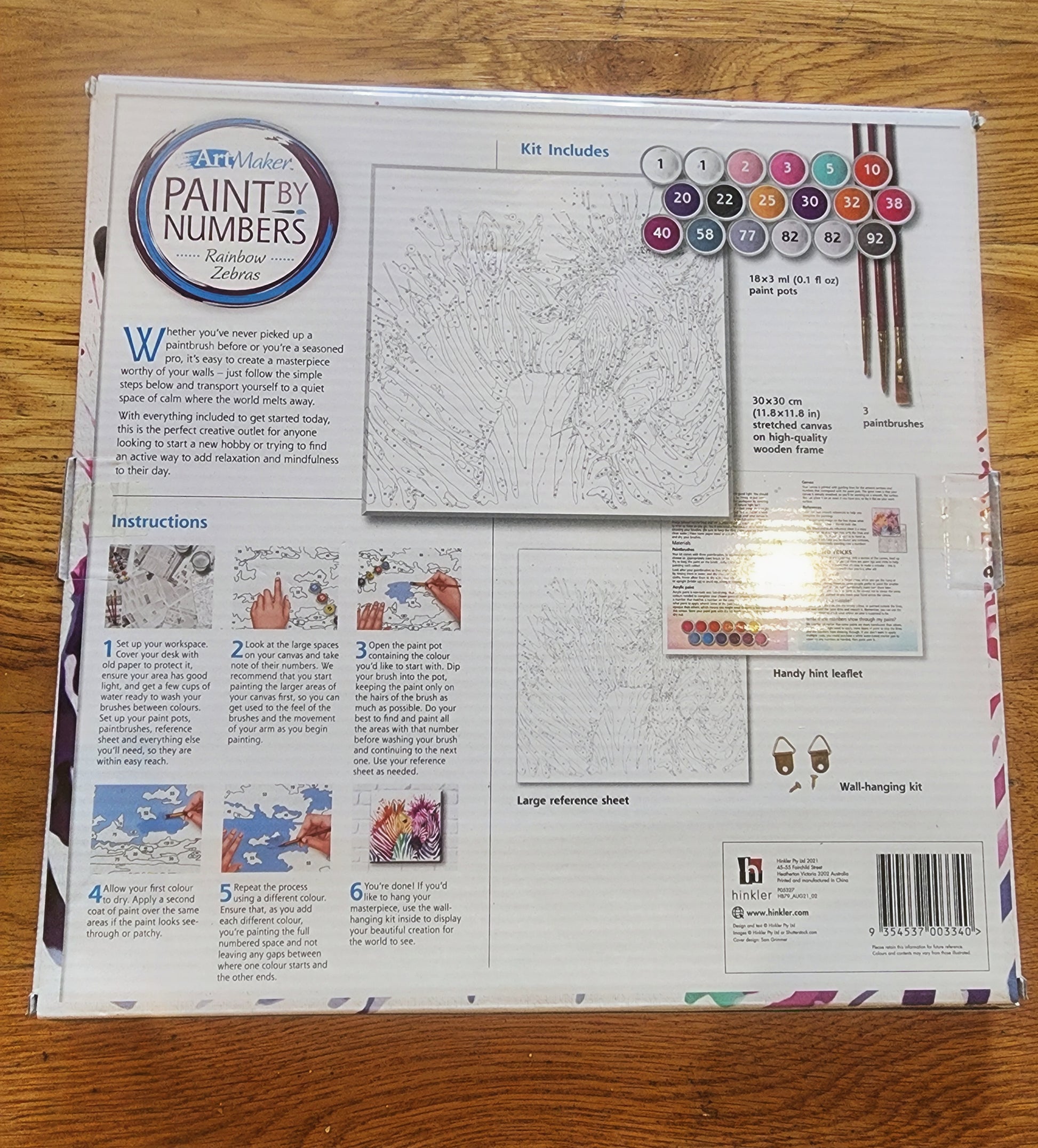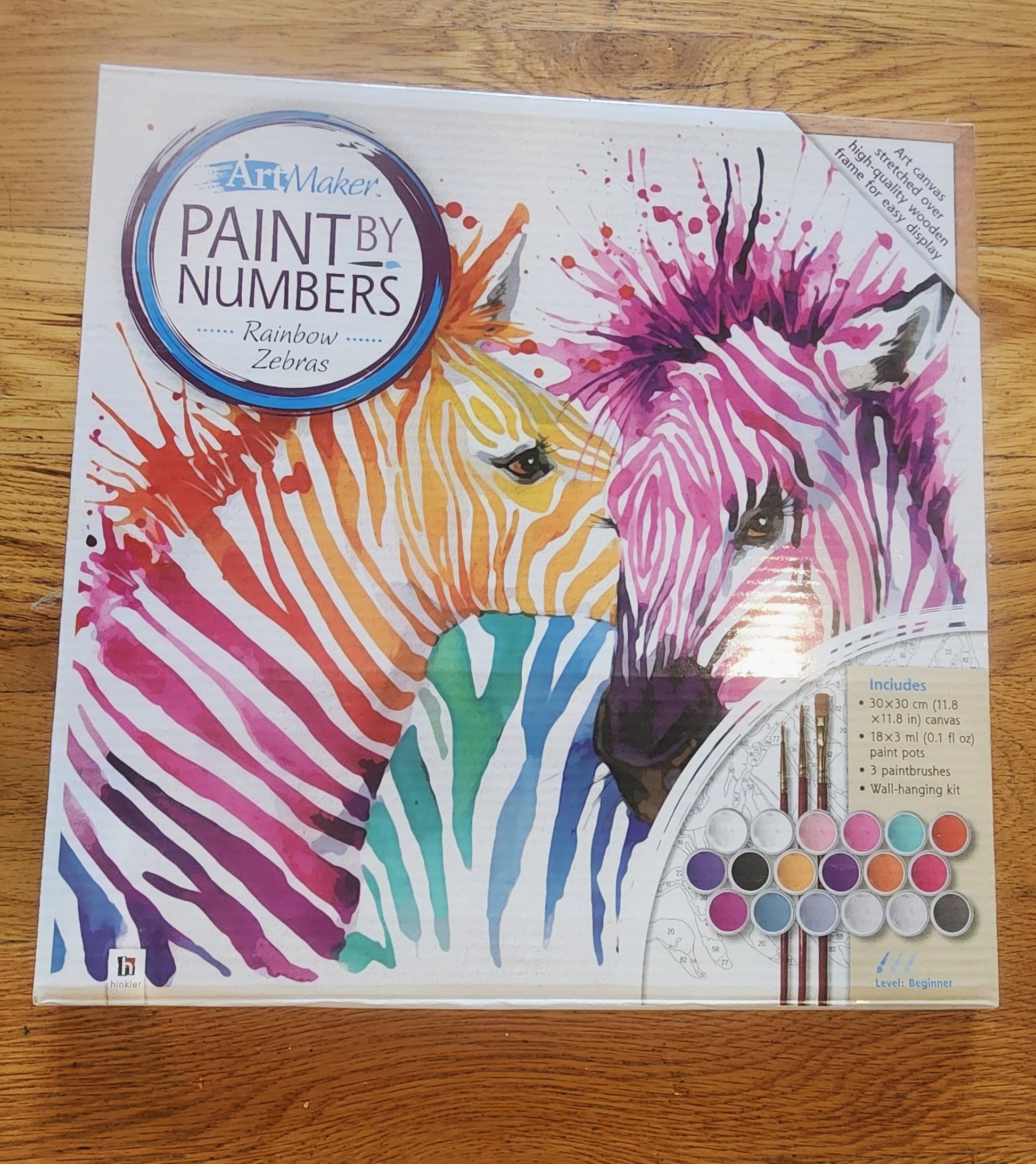 <span;>RAINBOW ZEBRAS paint by Numbers. 11.8 x 11.8 cones with 18 paint pods 3 paint brushes, and wall hanging kit