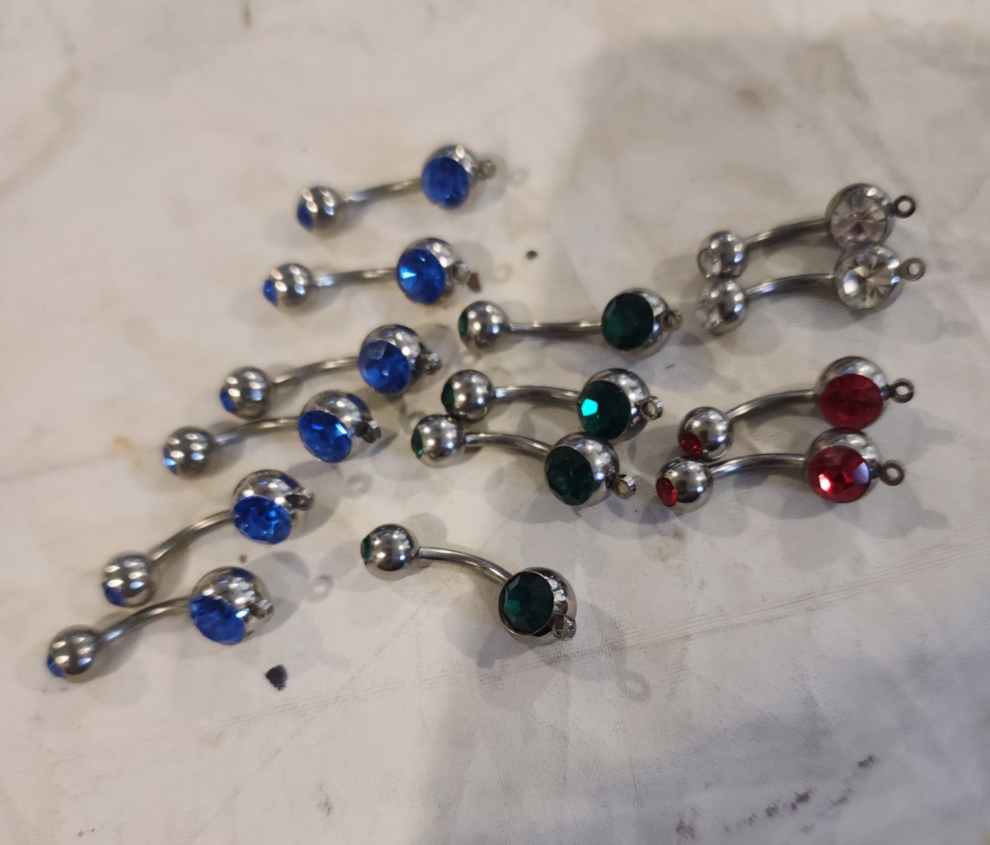Sparkling Lot of 14 Double Jewel Belly Button Rings for you and your friends.