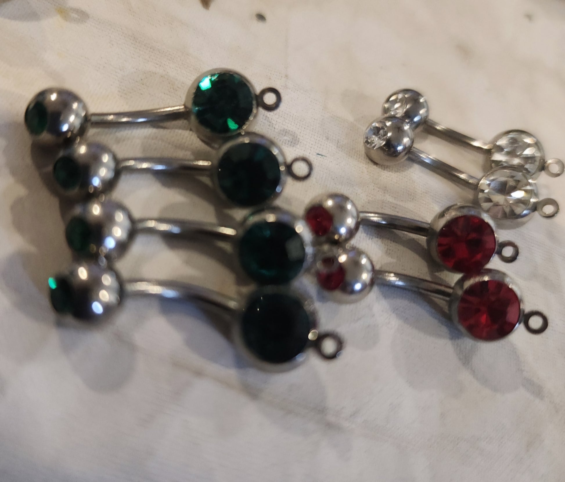 Sparkling Lot of 14 Double Jewel Belly button Rings