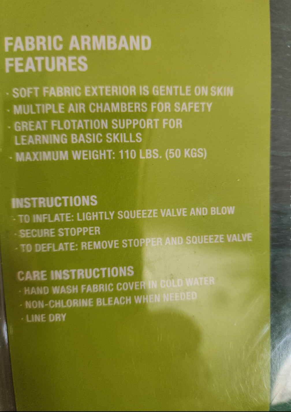 High visibility, bright inner fabric color for increased pool safety . When not in use, bands deflate quickly and can be rolled for easy starage