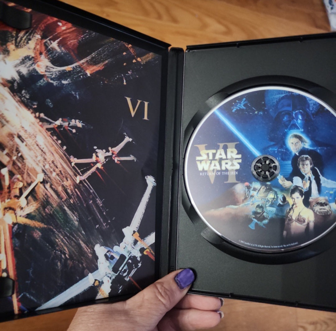 Relive the magic of the original Star Wars trilogy with this 4-disc DVD set! Includes Episodes IV, V, and VI snd a bonus in stunning THX digitally mastered full-screen format. Discs are in excellent, like-new condition and play flawlessly. Perfect for collectors or anyone wanting to experience the classic saga in its original format. Don't miss out on owning a piece of cinematic history!