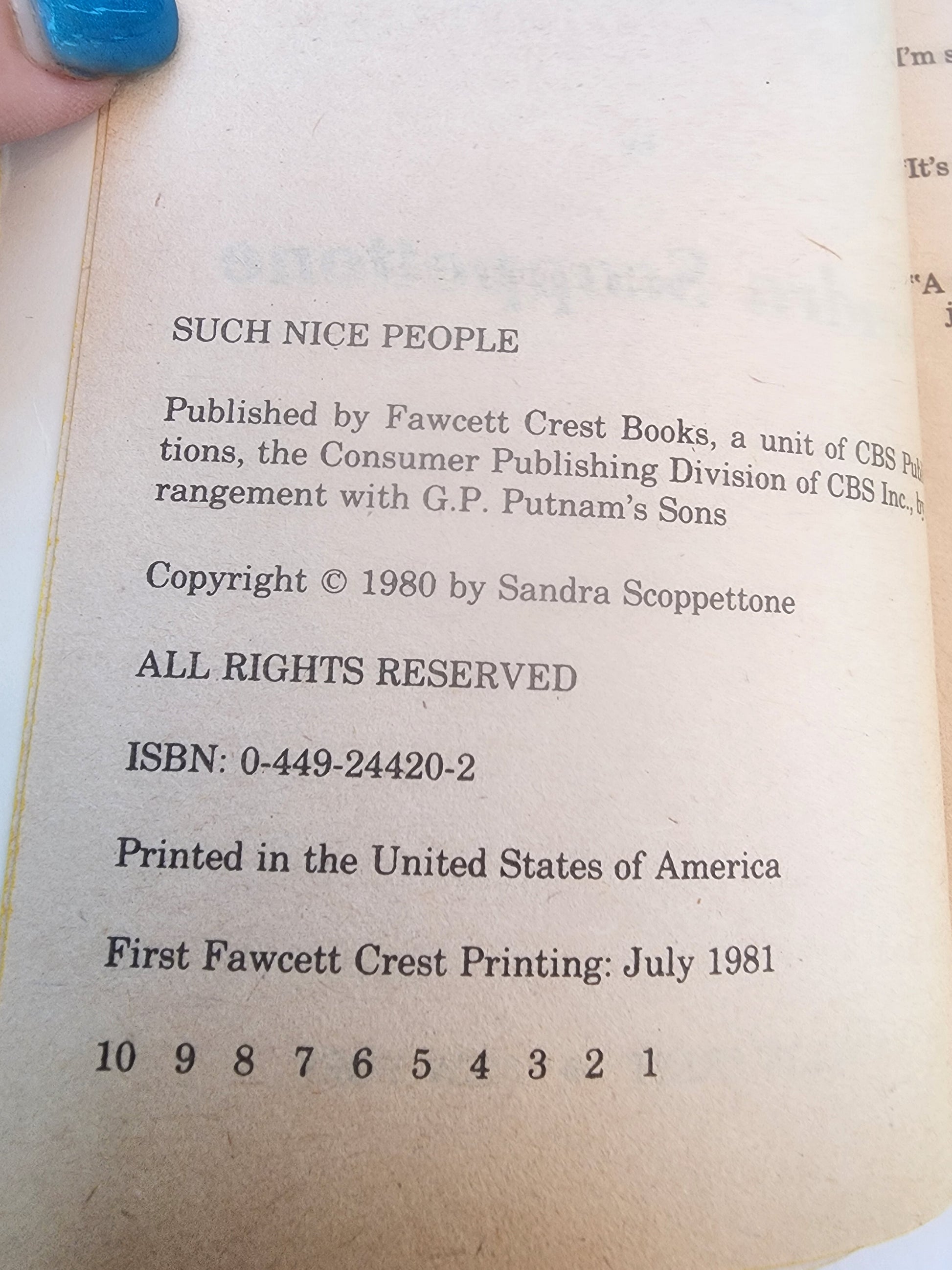 SUCH NICE PEOPLE Sandra Scoppettone Paperback Book 1981 Thriller Horror