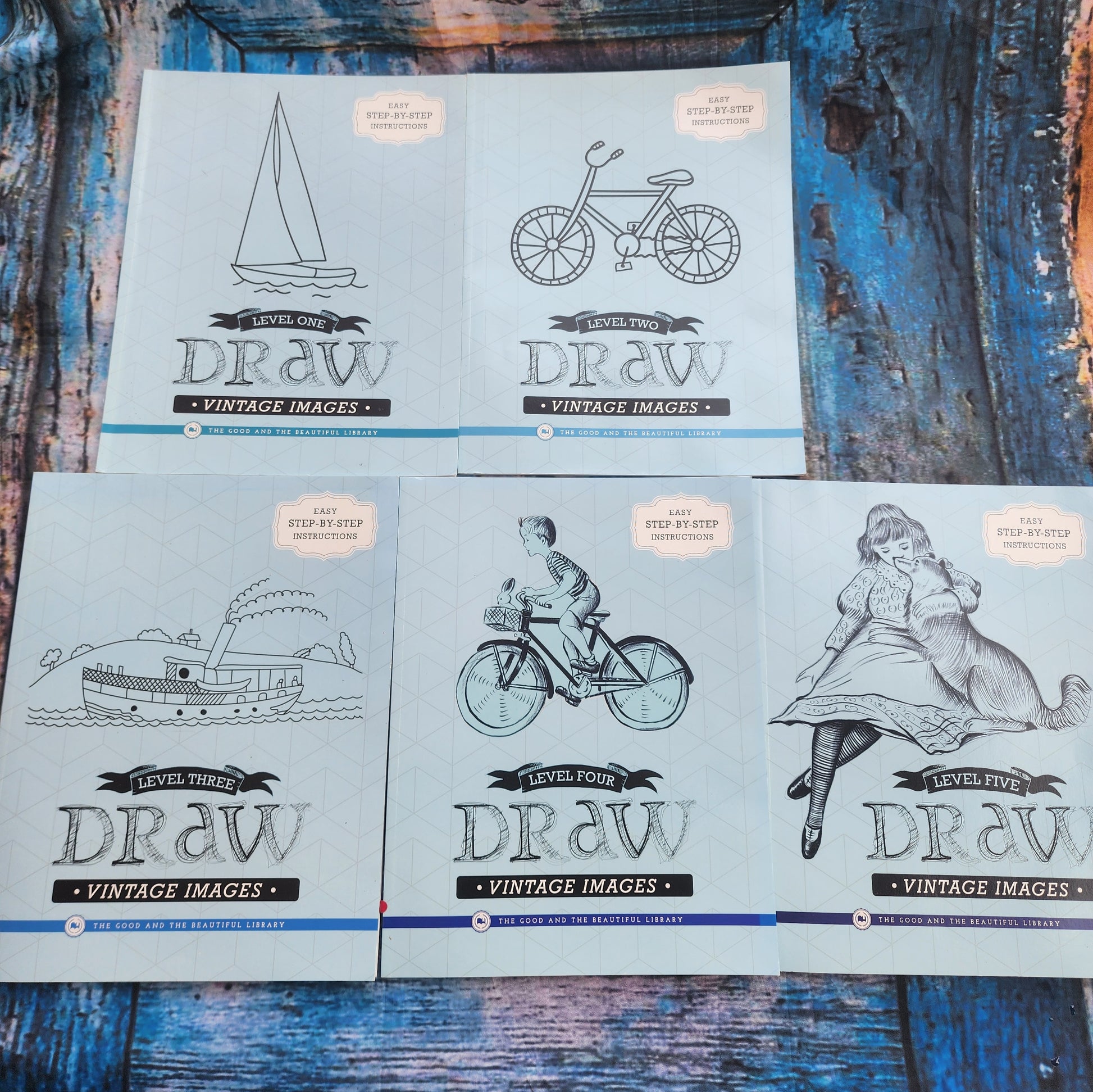 The Good and the Beautiful Draw Vintage Images Set, Levels 1-5 Complete Homeschooling Art Book