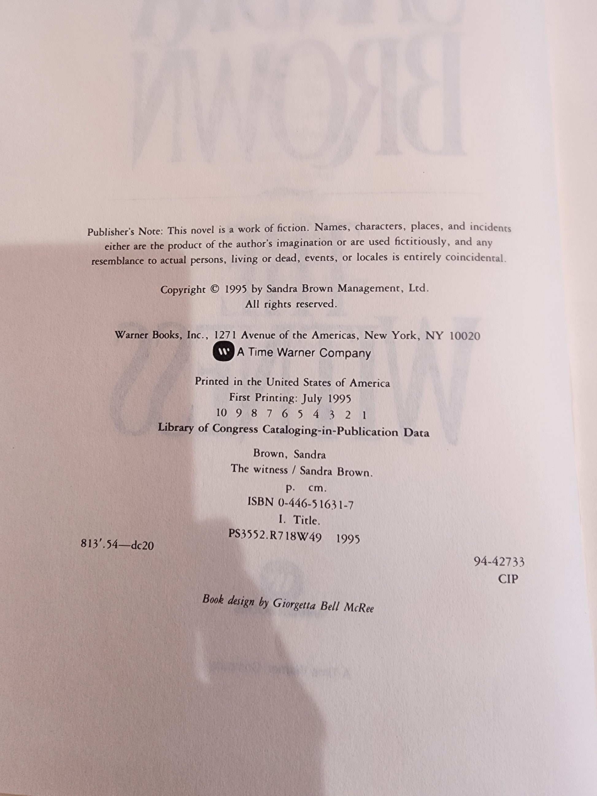 <span;>Dive into the suspense of Sandra Brown's "The Witness," a compelling thriller from the New York Times bestselling author of "Charade." This is a first edition hardcover from 1995, in good pre-owned condition, ready to deliver a gripping reading experience.