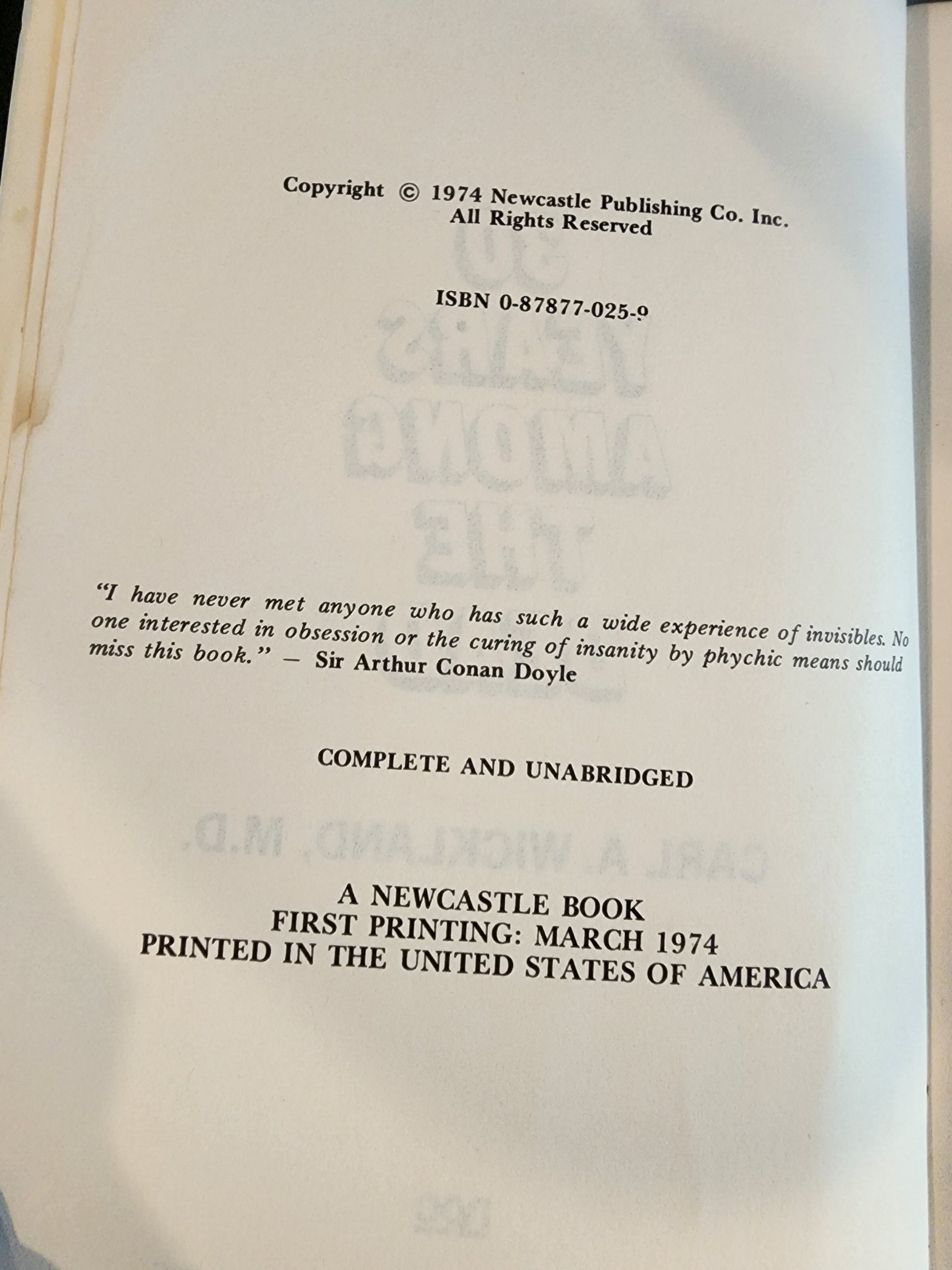 <span;>Delve into the fascinating and controversial world of spirit communication with "Thirty Years Among the Dead" by Carl A. Wickland. This 1974 softcover edition offers a firsthand account of Dr. Wickland's decades of research and experiences in psychic phenomena and the afterlife. A thought-provoking read for anyone interested in parapsychology, spiritualism, and the mysteries beyond.