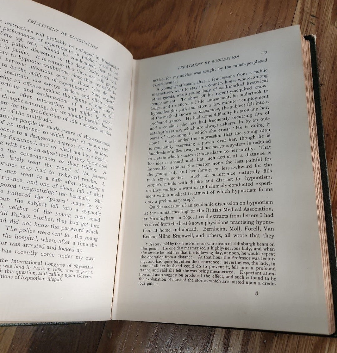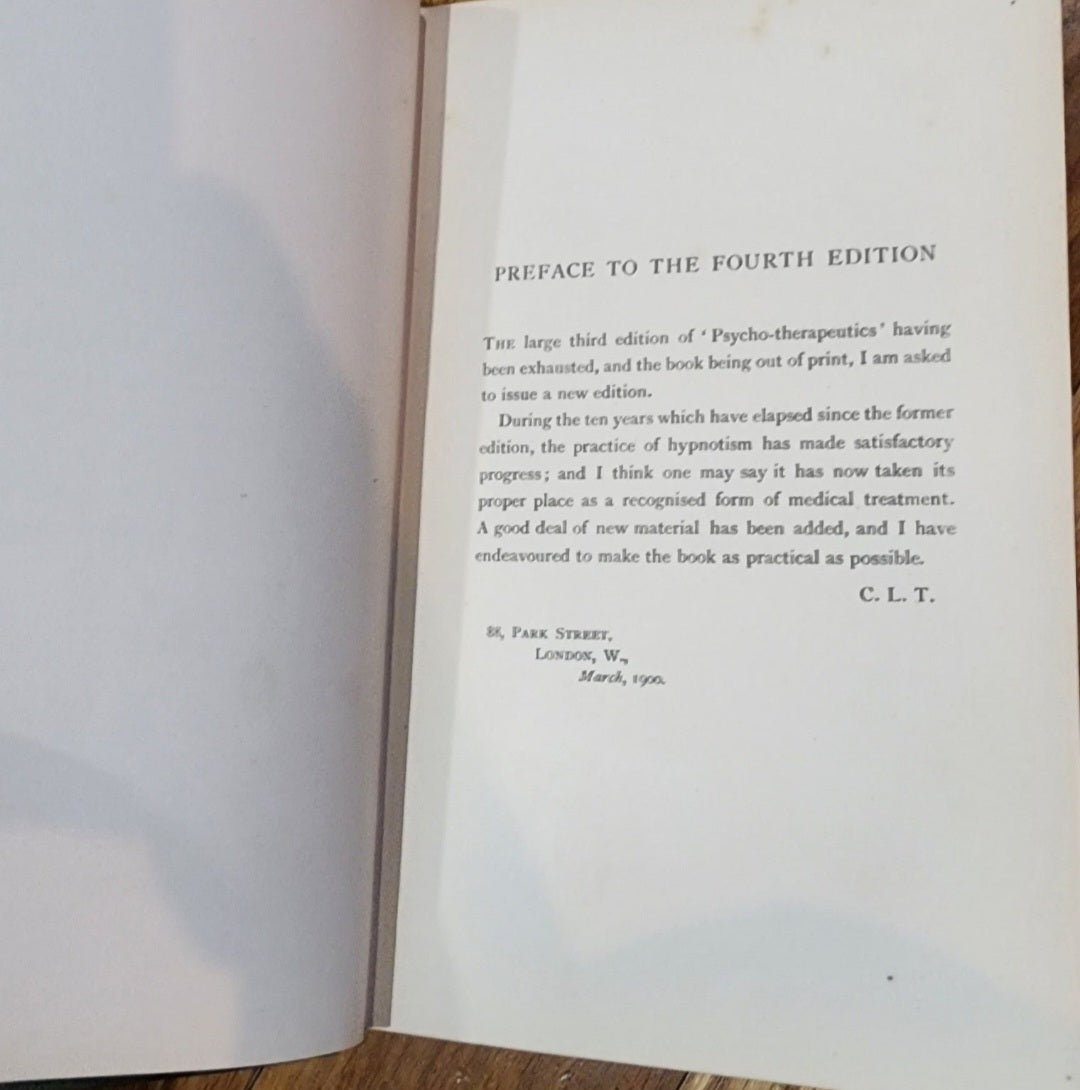 <span;>Vintage 1901 Treatment by Hypnotism & Suggestion Psycho-Therapeutics 4th Edition by C. Lloyd Tuckey in good condition with some scuffs to cover and binding is not as tight as it once was.