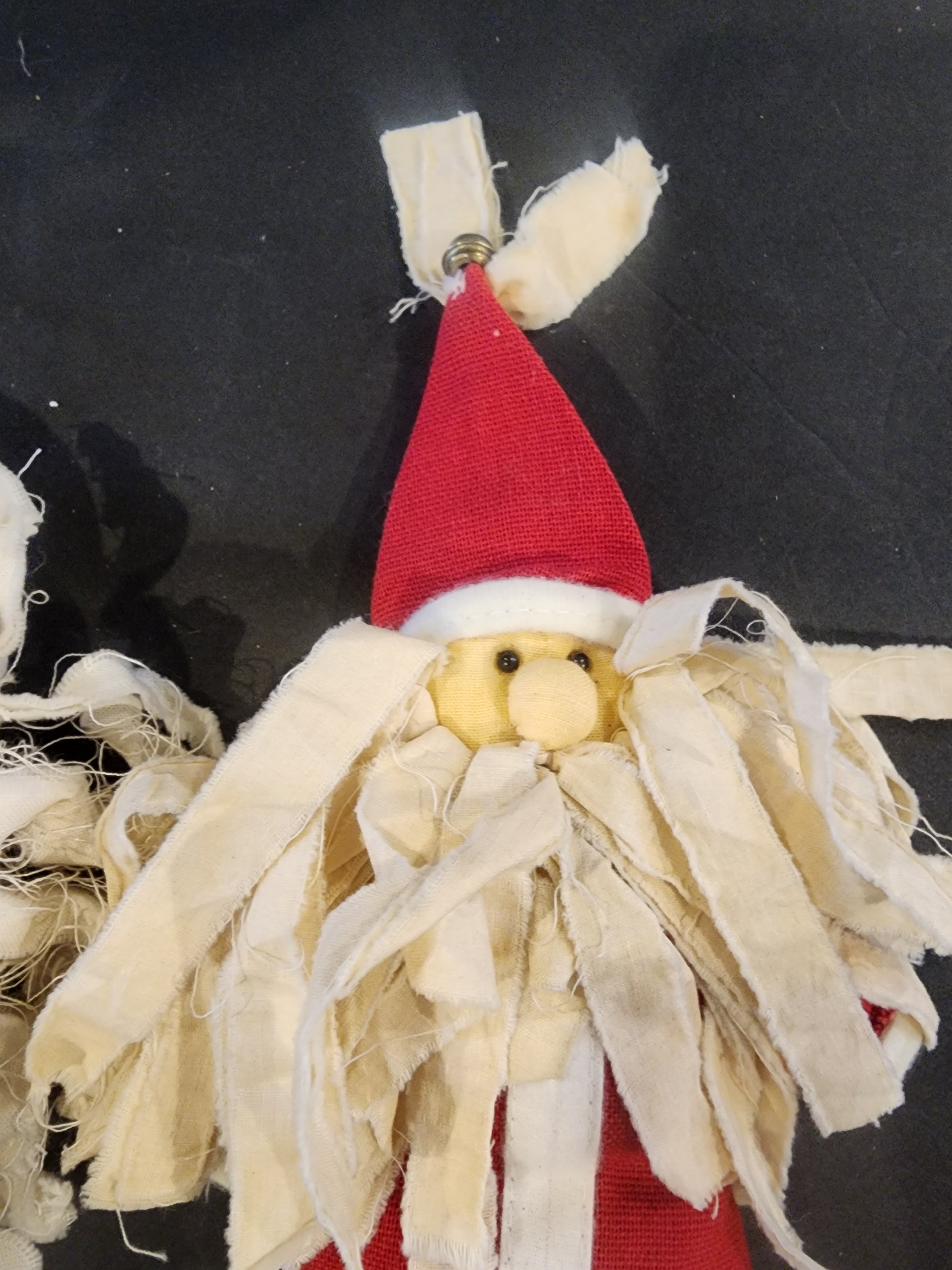 Two Christmas Ornaments Cloth Santa Claus with rag beard