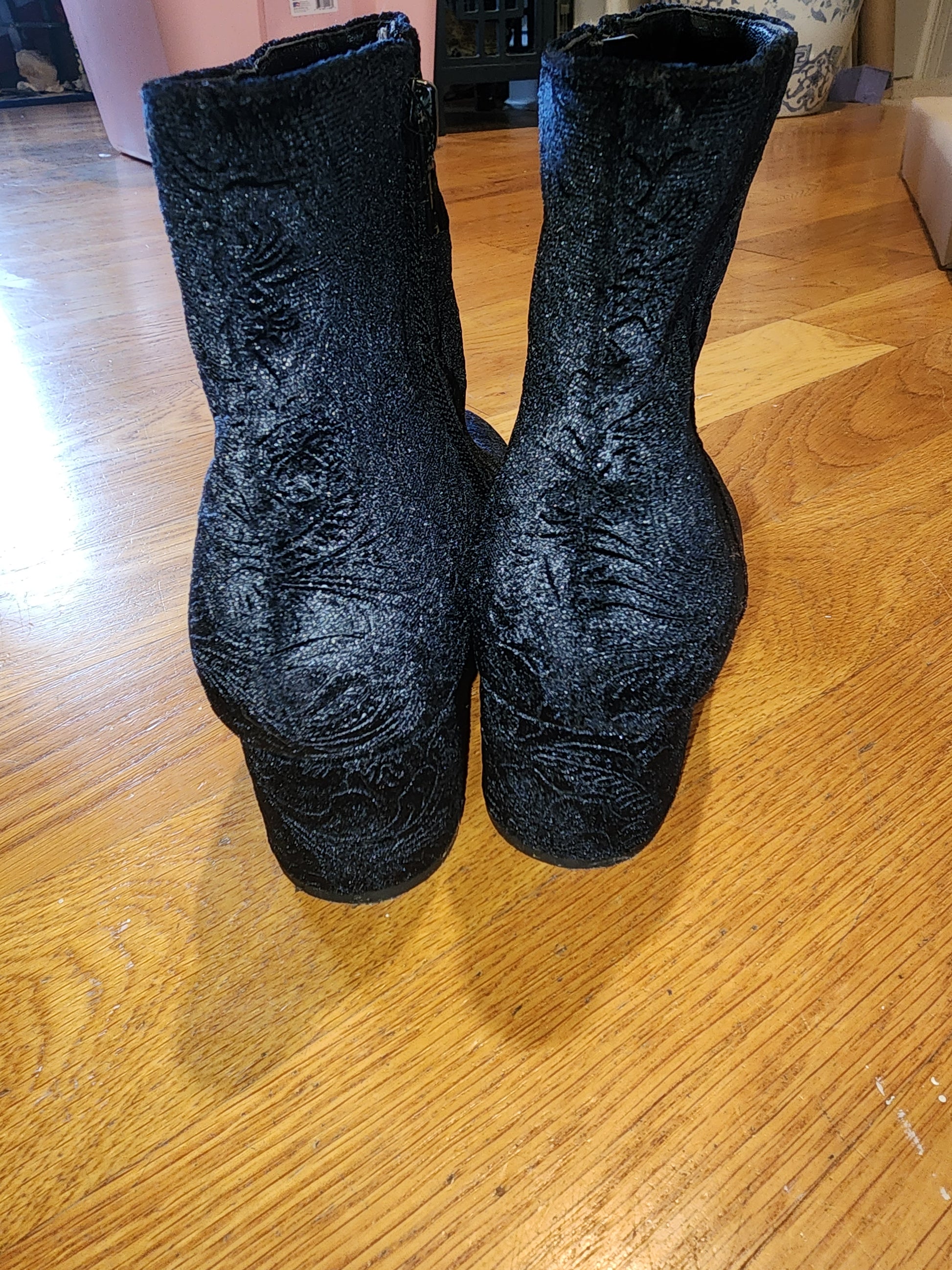 <span;>UNISA black velvet paisley embossed Boots size 8 preowned I. Good condition. These are preowned in very good condition. I can only find one little place on these boots check out last pictures
