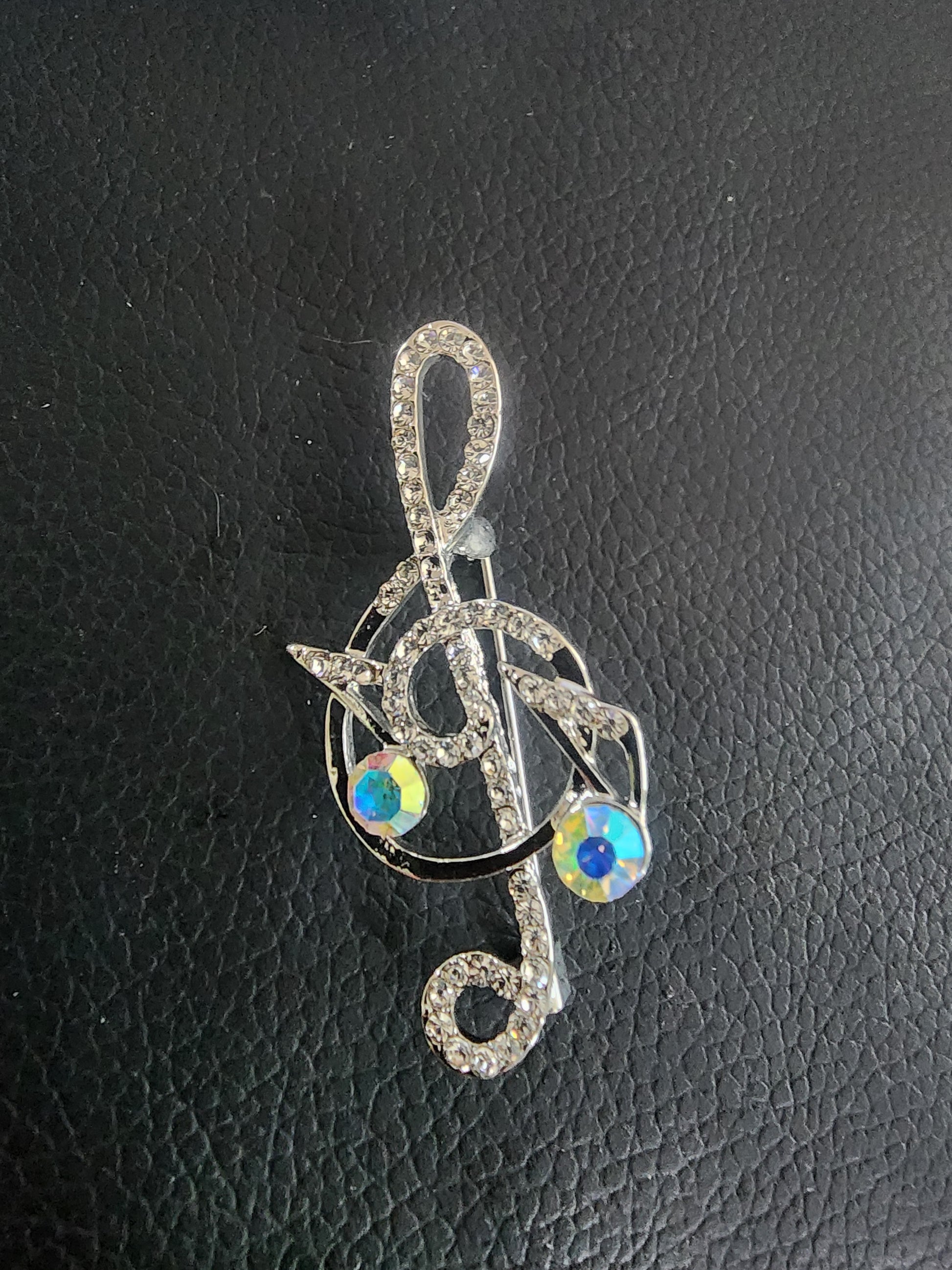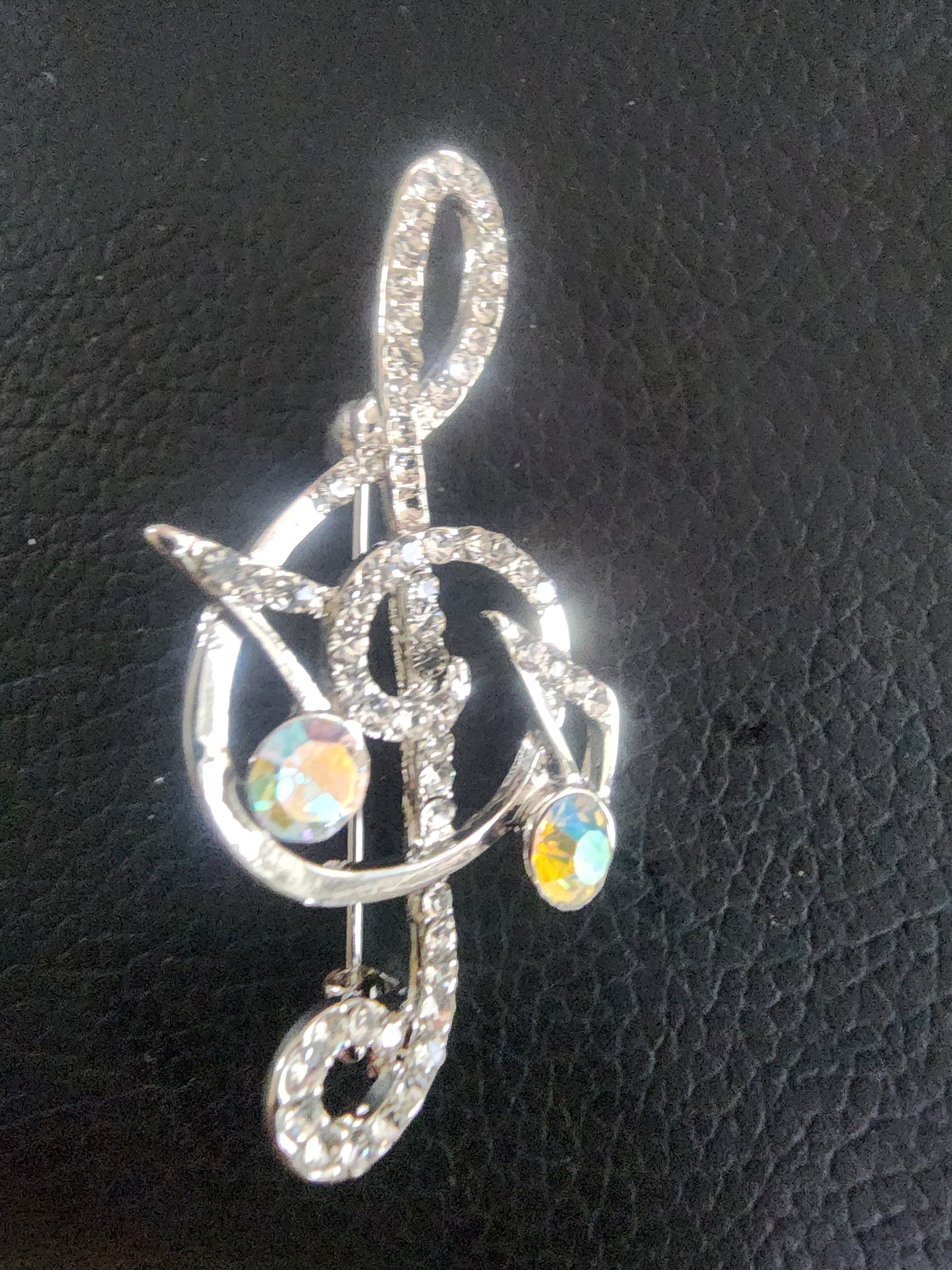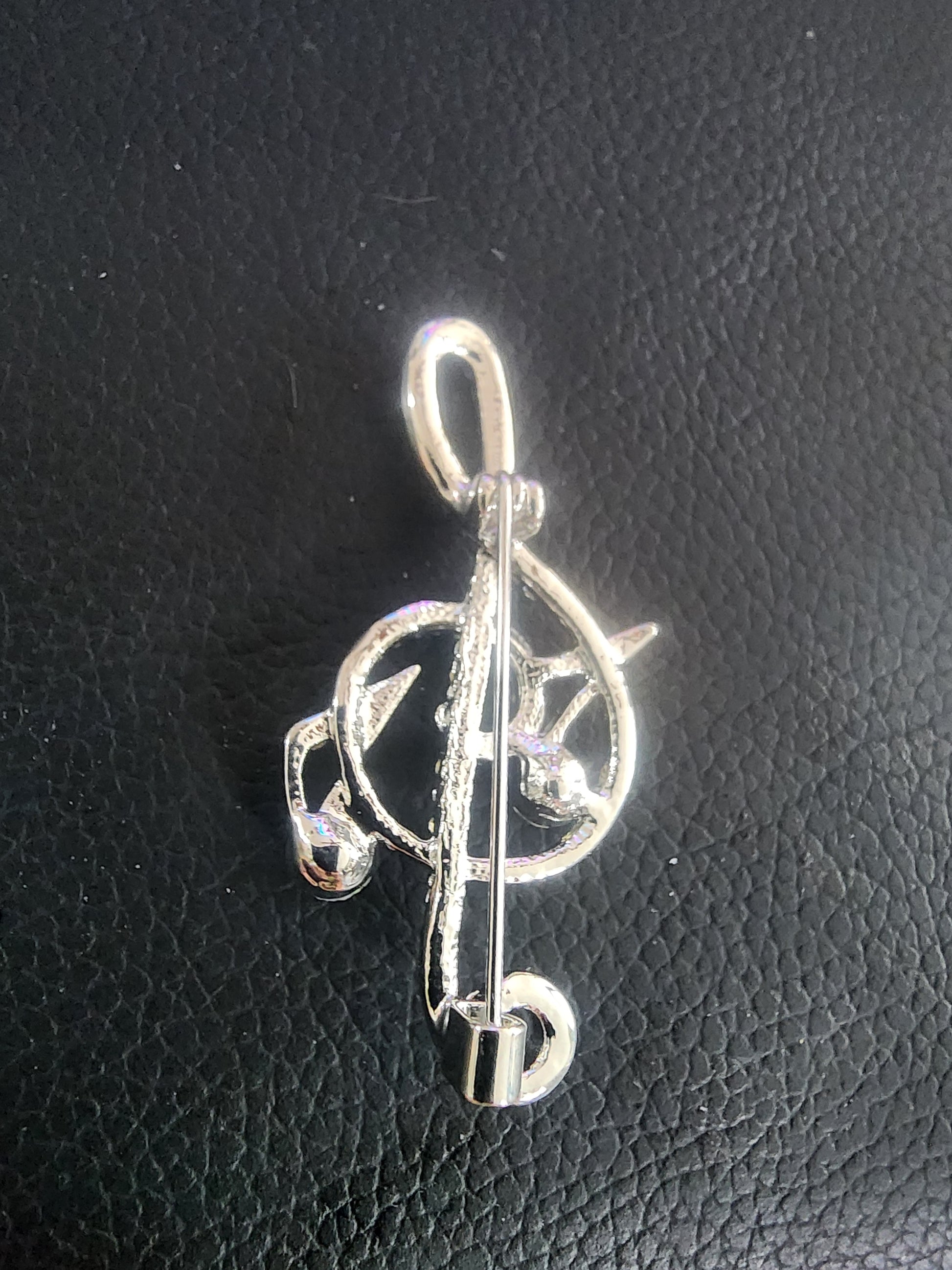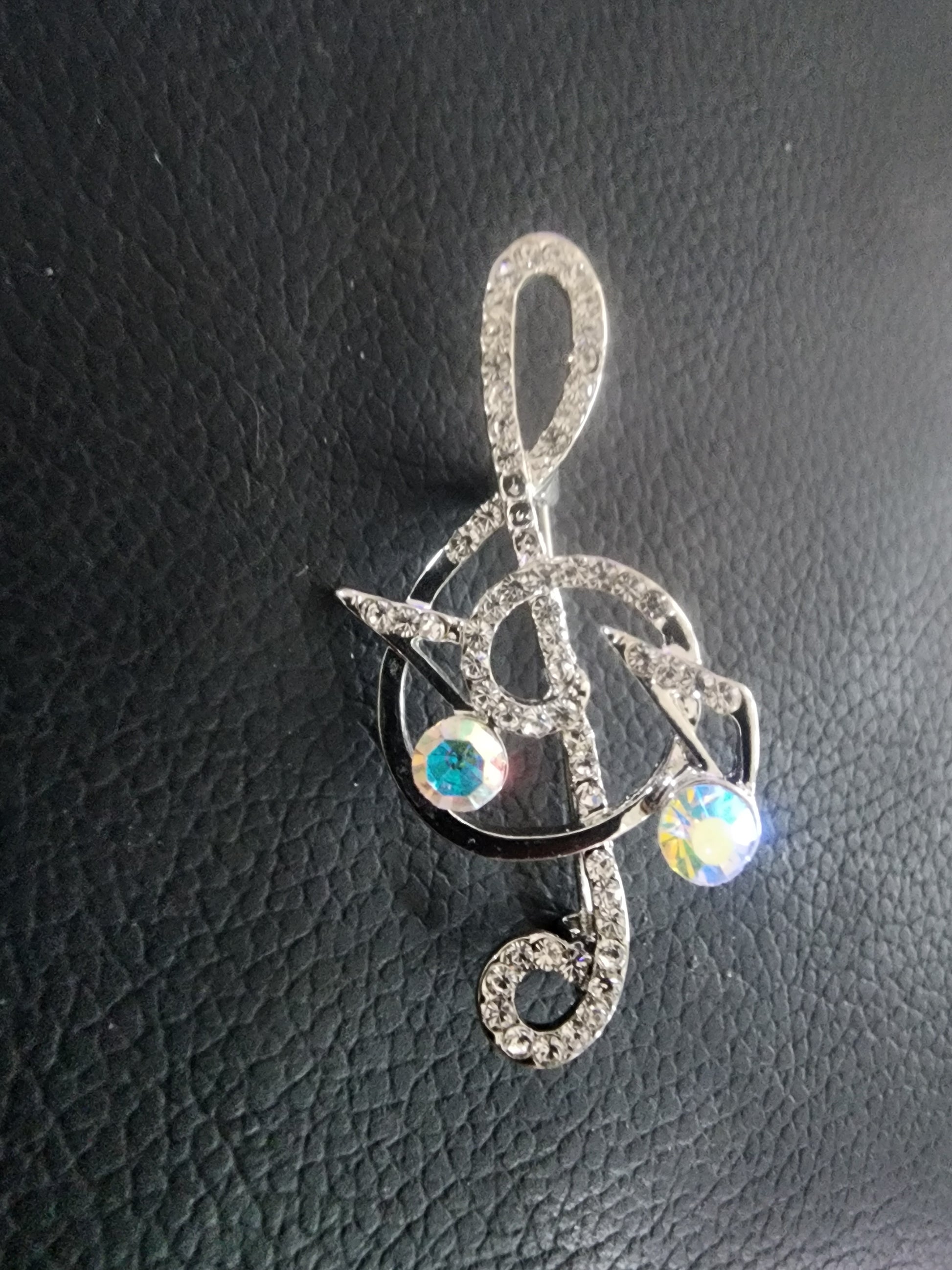 Sparkling Musical Elegance: Rhinestone Treble Clef Brooch