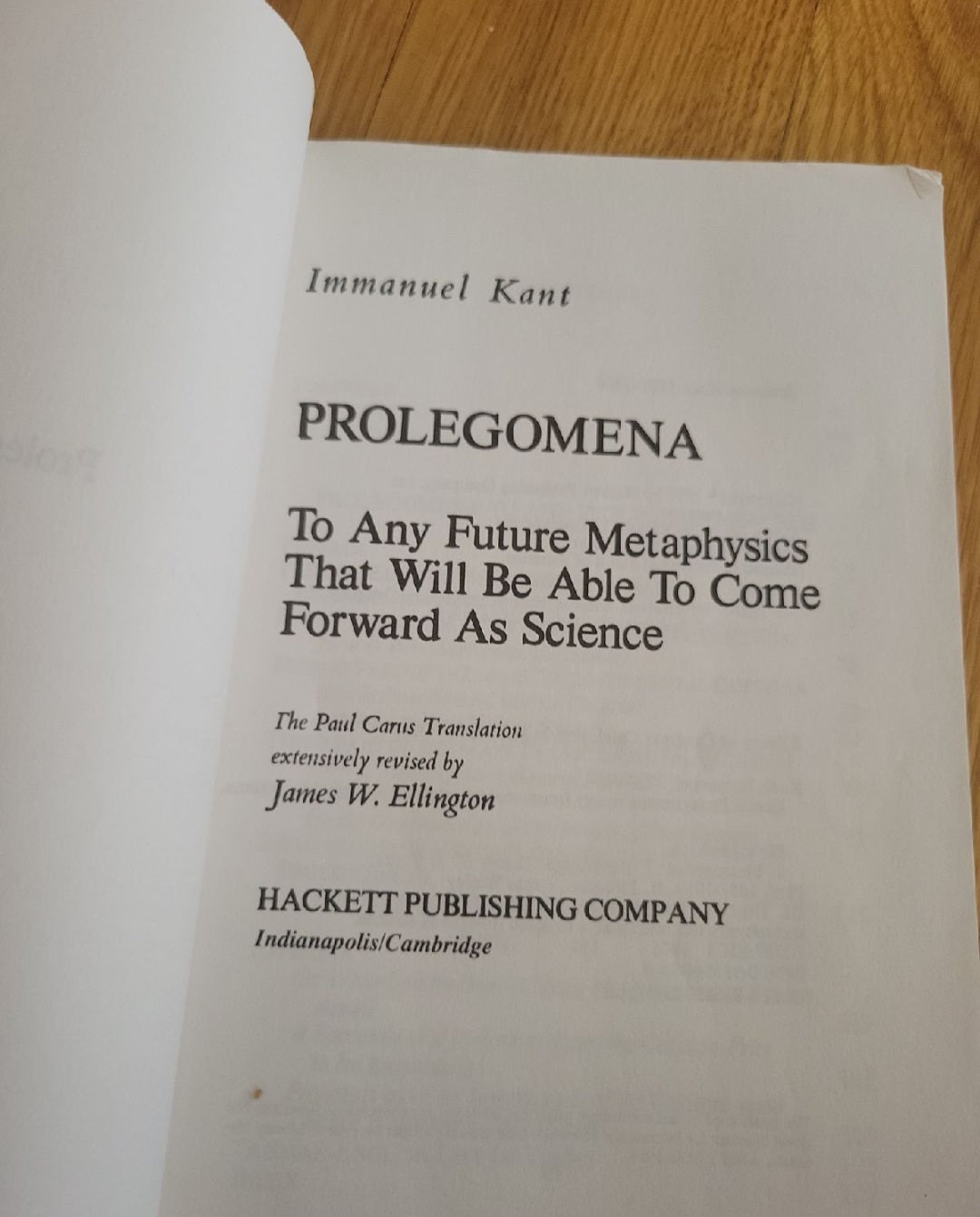Prolegomena to Any Future Metaphysics That Will Be Able to Come Forward As Science