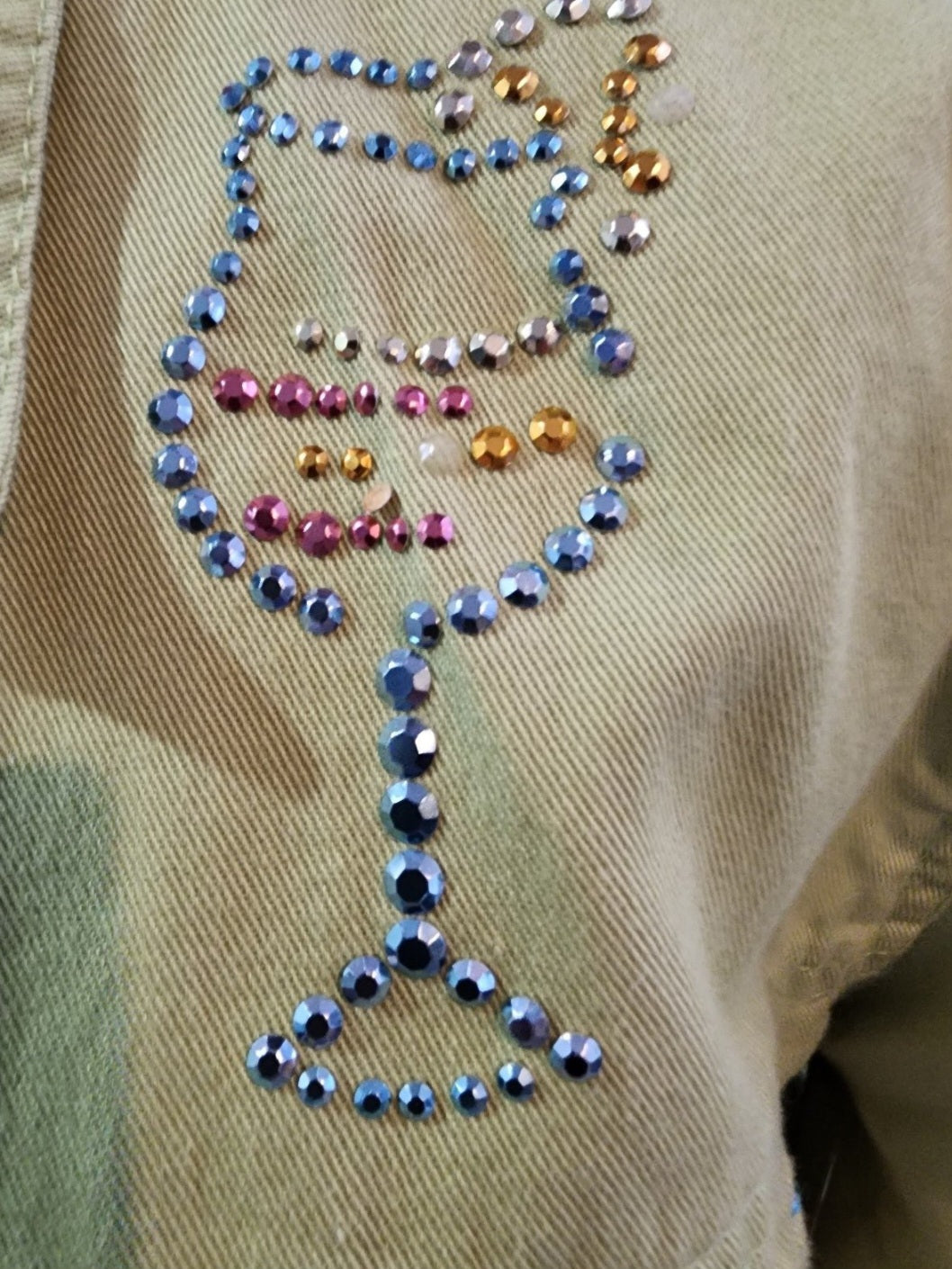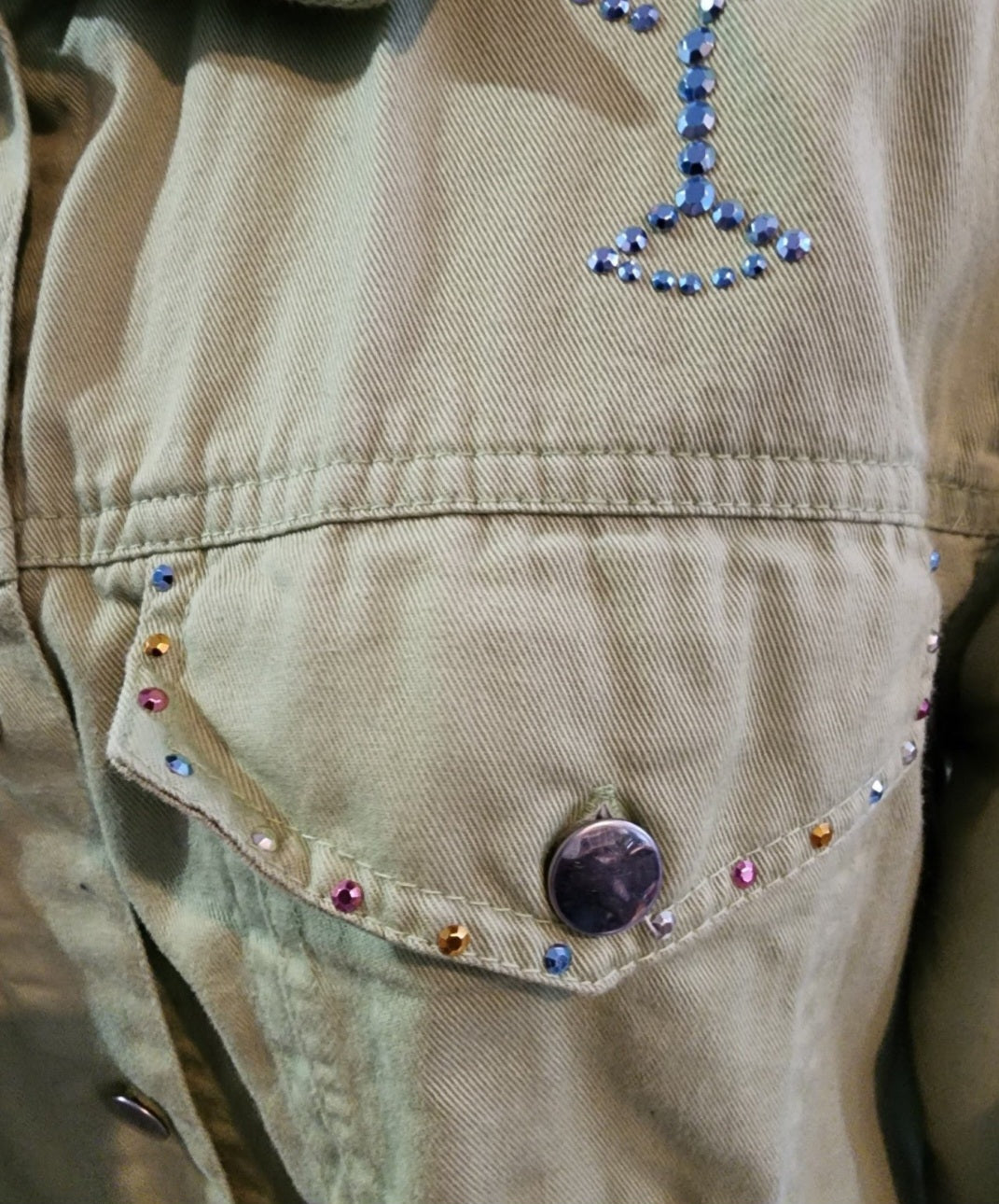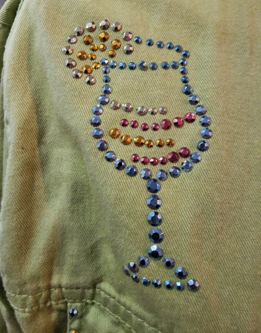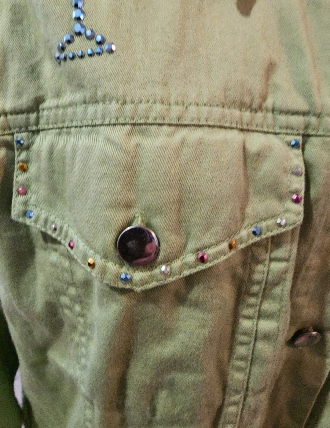 <span;>Preowned Margarita Lime Green Jacket L in good xondition one of the margarita glasses is missing two beads. Meassurements pit to pit 21.5" top to bottom 24.5"