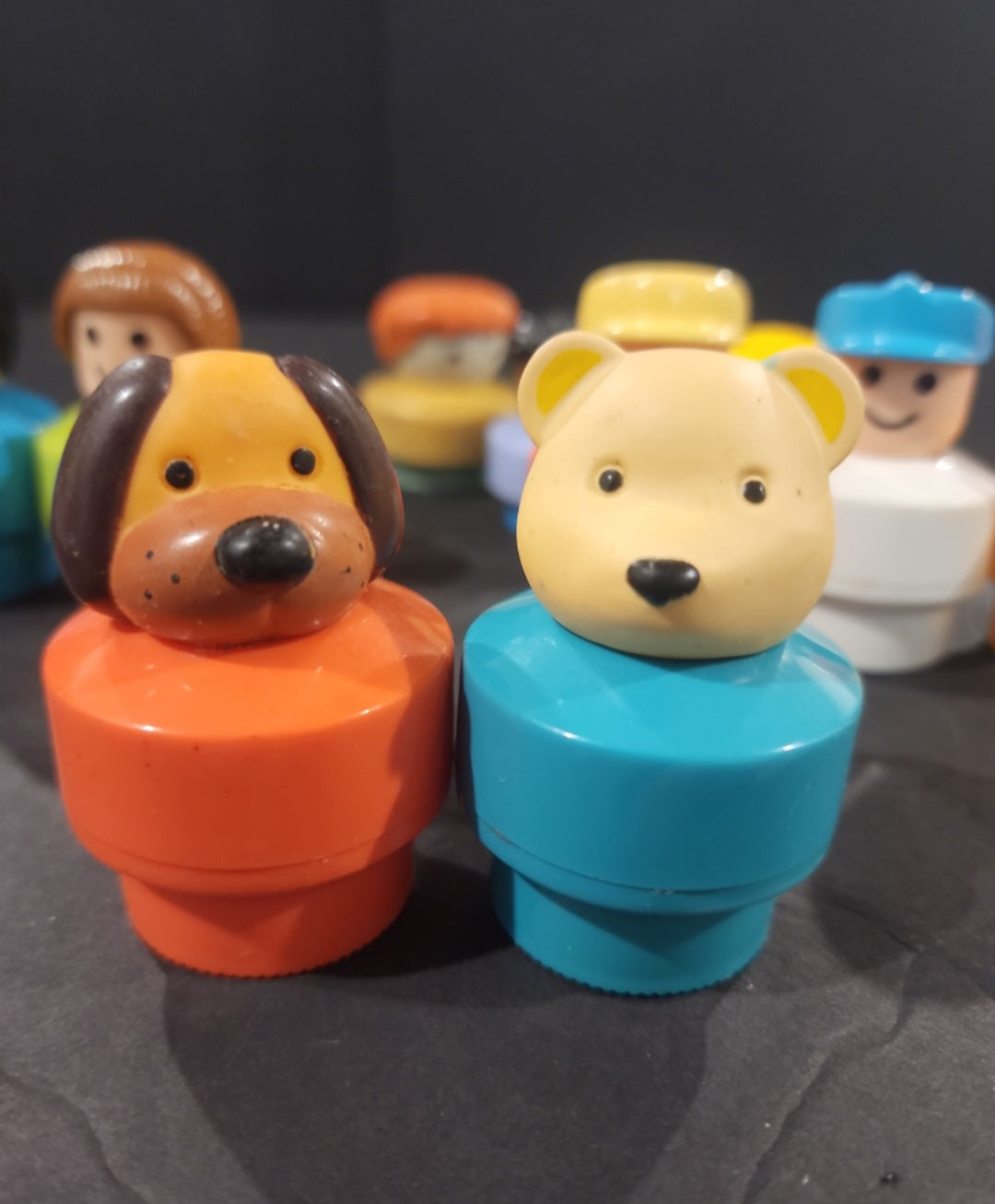 A lot of 10 Vintage Jumbo Chunky Little People And Animals Plastic Toy Figures.