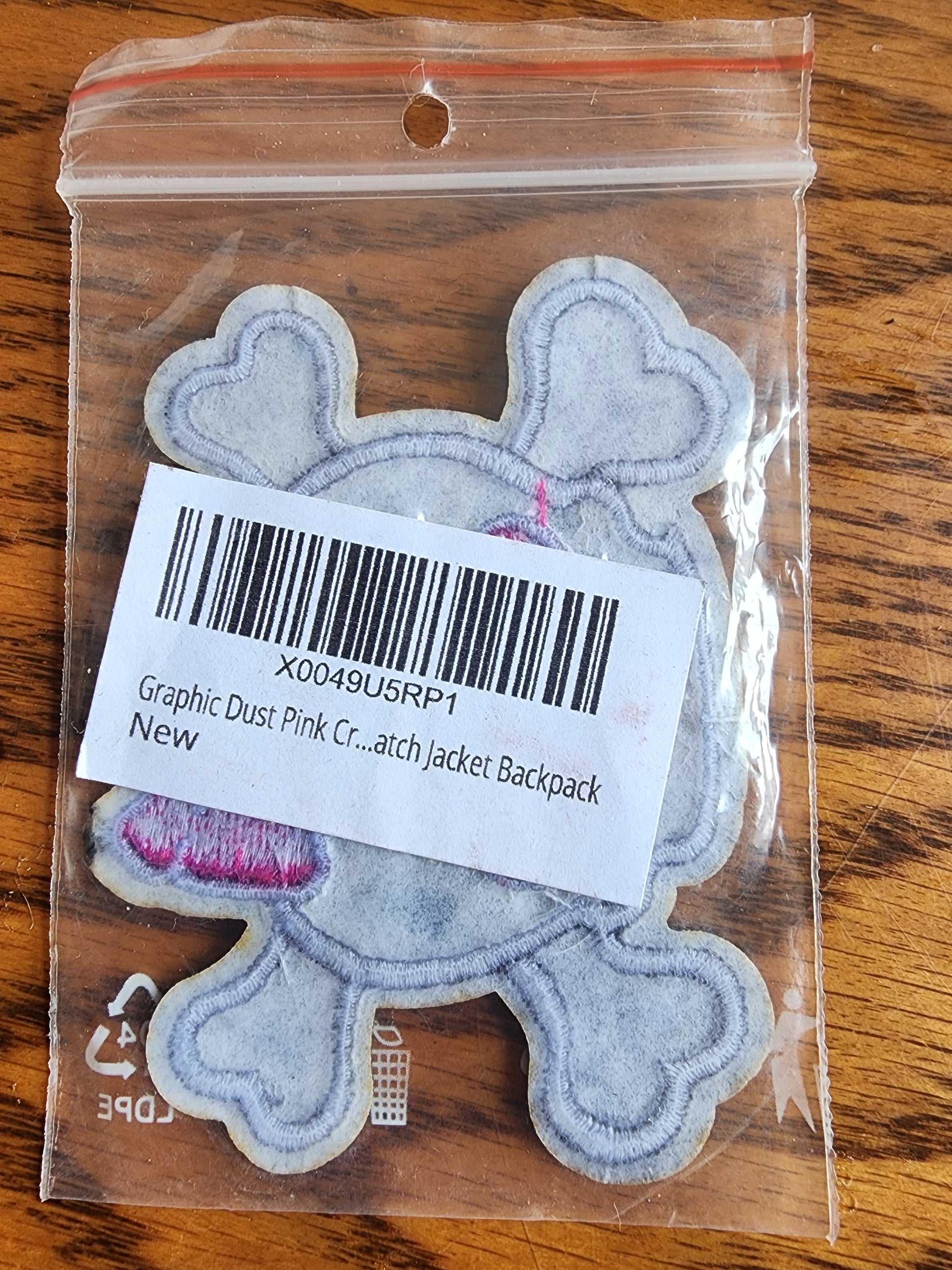<span;>Pink Crossbones Skull Embroidered Iron on Patch Jacket Backpack measurements. 3.25" wide x 2.25" tall