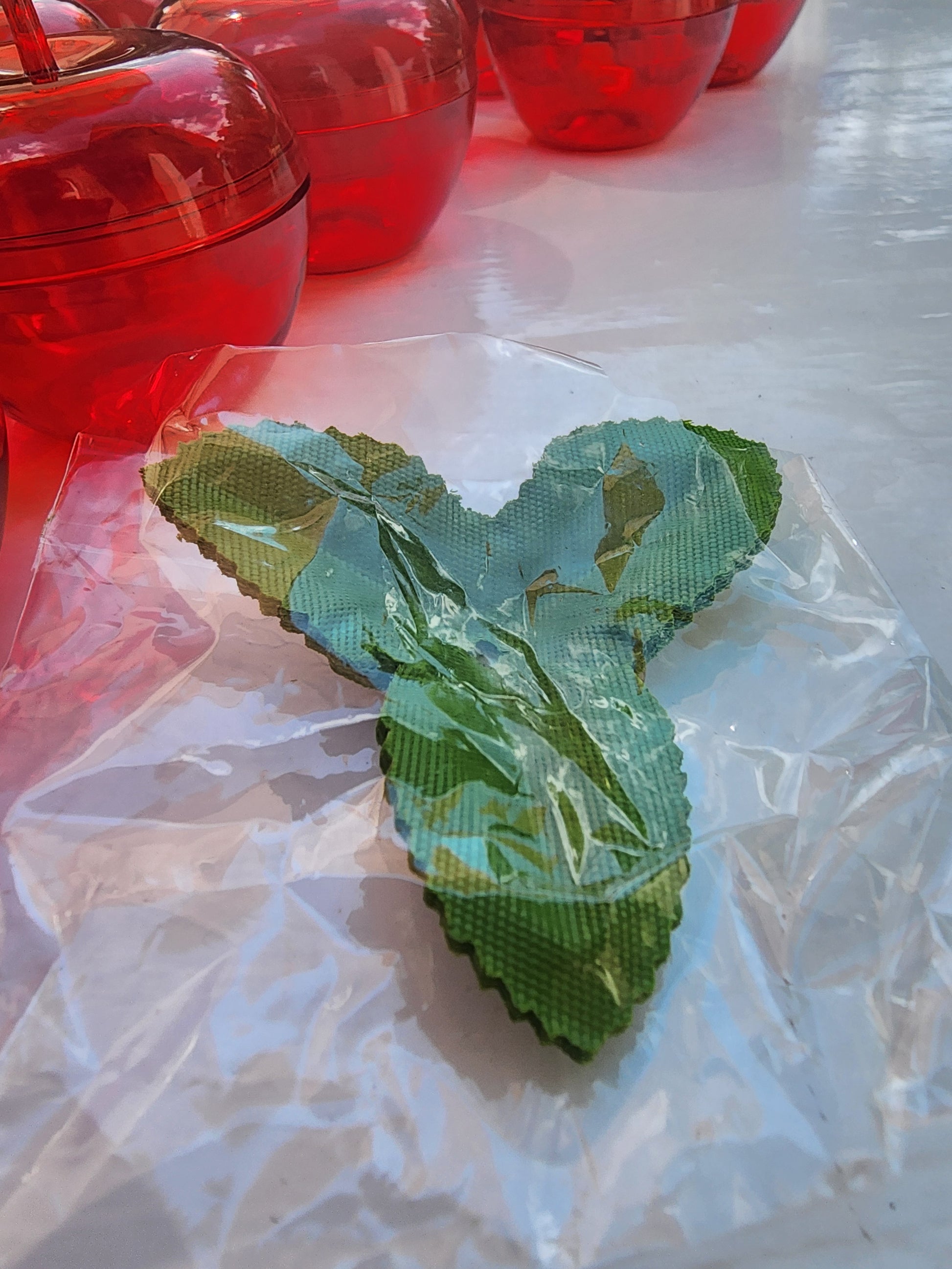 <span;>23 Pcs Red- Container Candy Boxes Plastic Apples Decorative Fillable Ornament. Aprox. 2" tall, the leaves is a cloth material