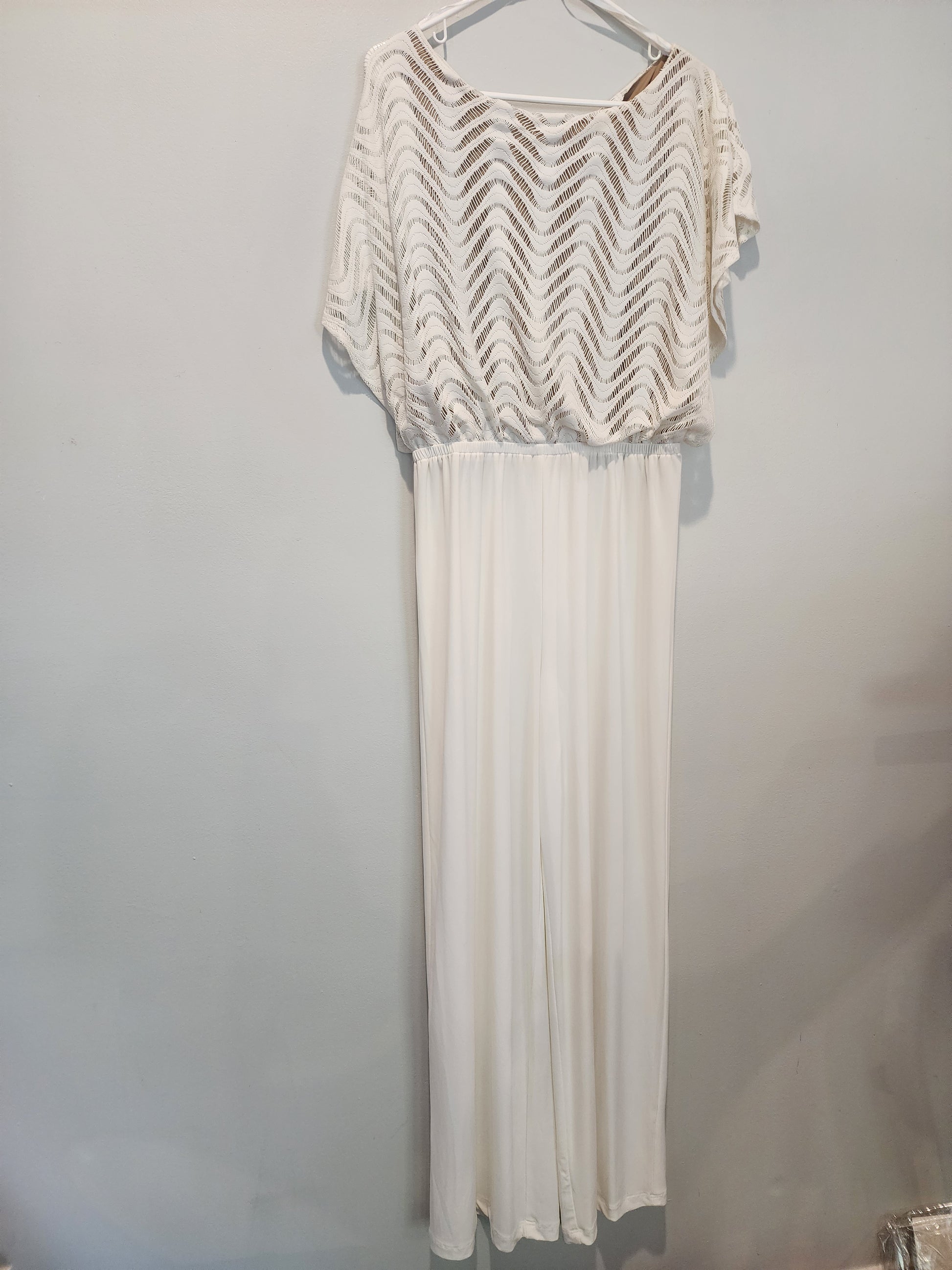 New Emma & Michele White Crochet Knit Jumpsuit Women's Size M NWT One-Piece Outfit