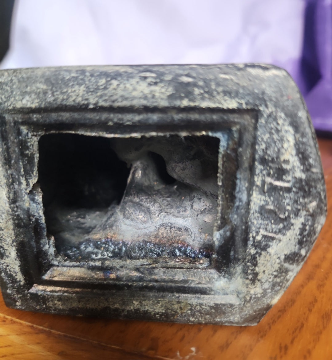 <span;>Bring a piece of history into your home with this striking 1928 metal figurine of "The Thinker." Perfectly sized at 7" x 4", it's ideal as a unique bookend or a contemplative desk accent. Its original tarnished patina tells a story, showcasing beautiful vintage character with minor surface wear and discoloration. A true collector's find!