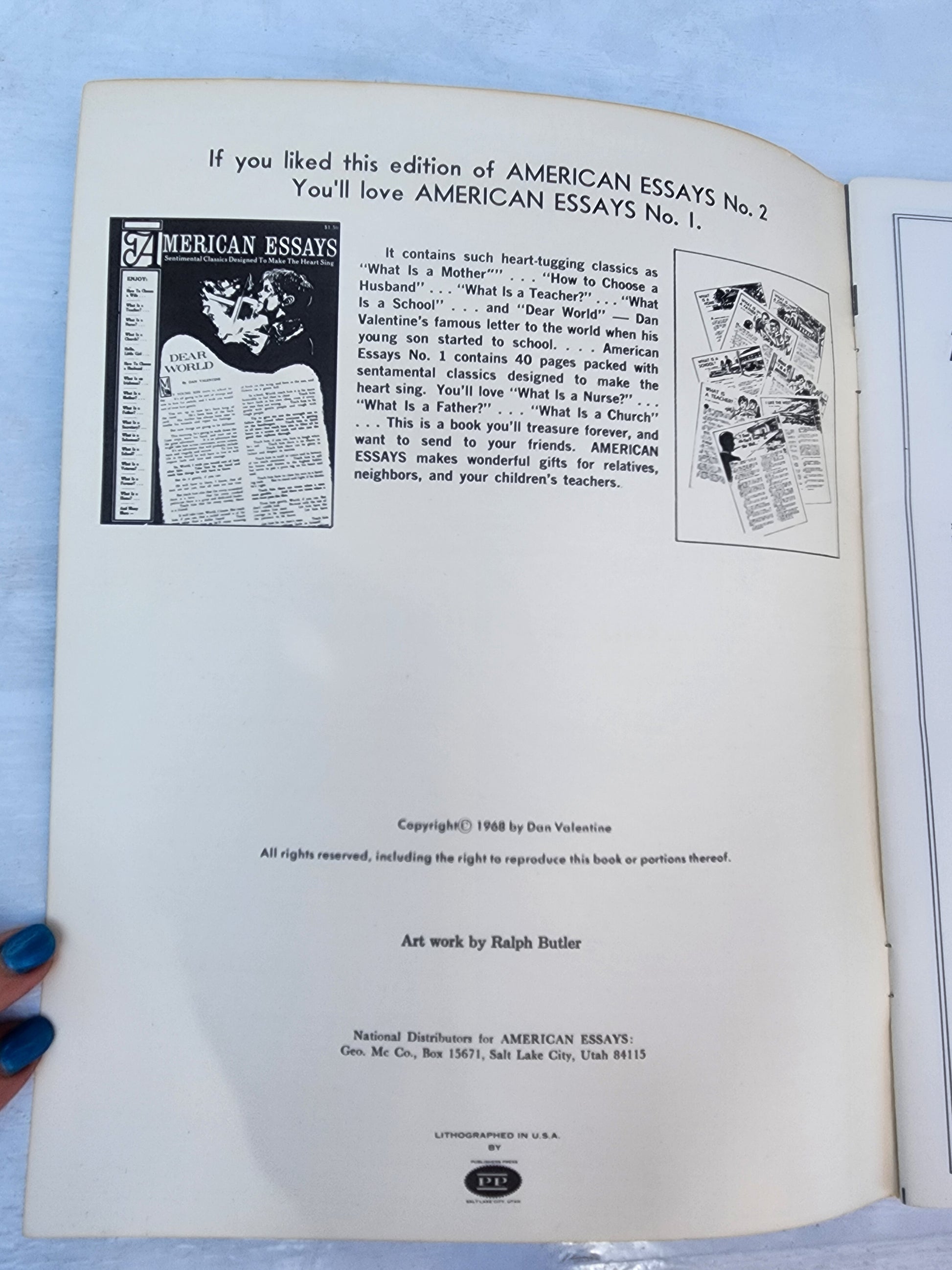 <span;>Step back in time with this fascinating piece of Americana! Up for grabs is a vintage softcover copy of "American Essays Number Two" from 1968, featuring the thought-provoking essay "This is a Wife" by Dan Valentine.