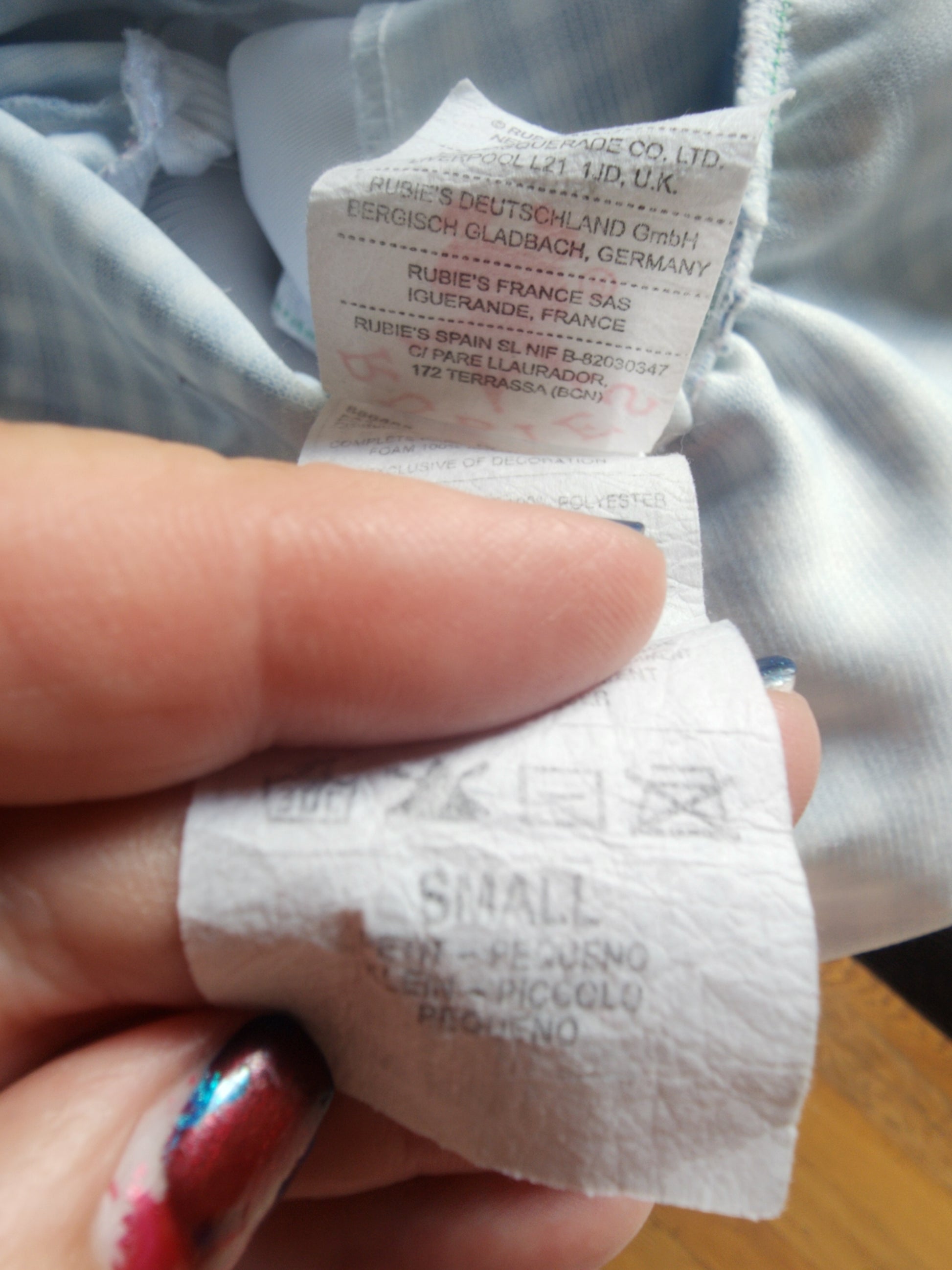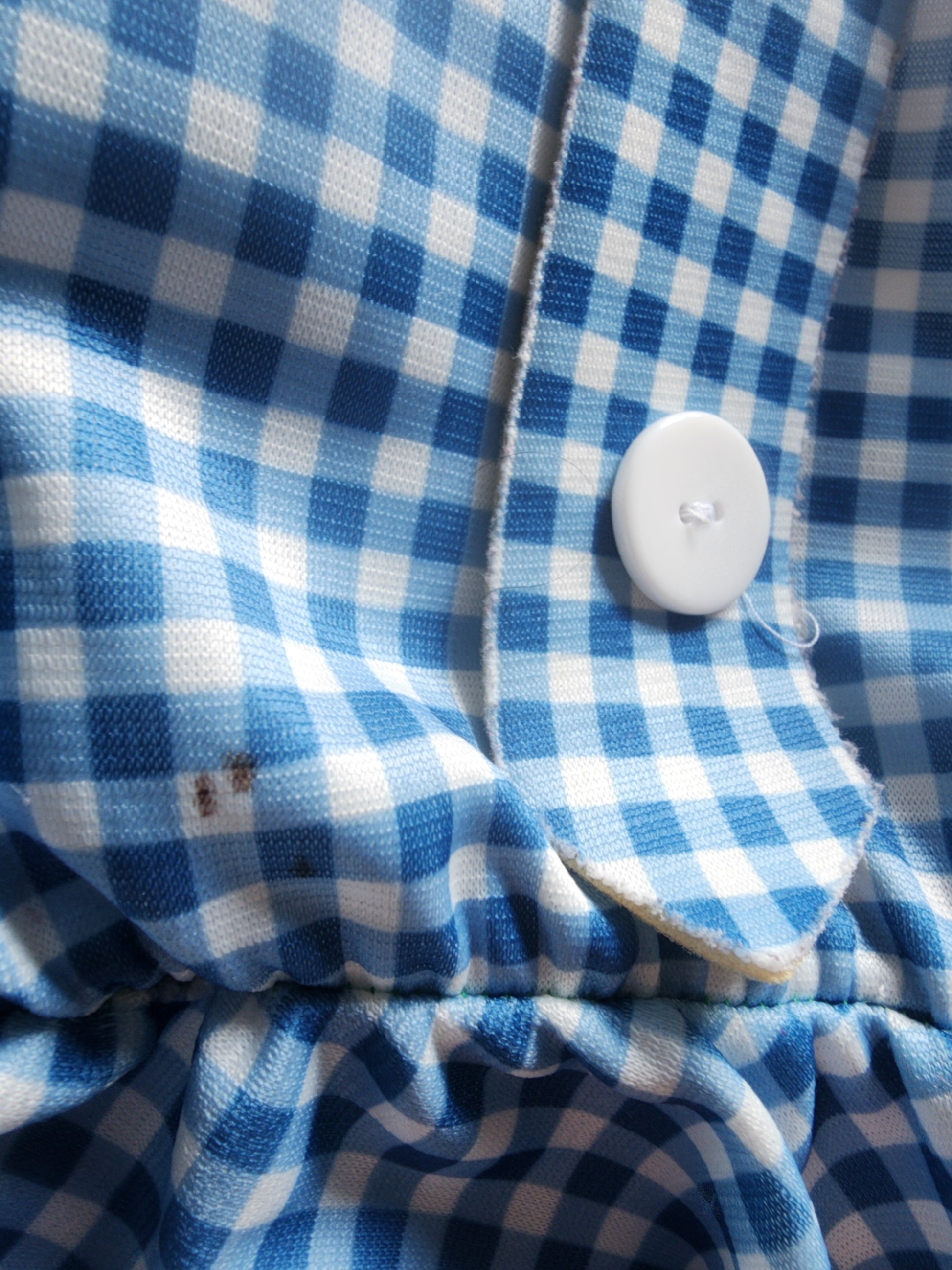 <span;>VINTAGE Costume Dotothy from Wizard of .oz. This is in fair condition look at all of pictures to determine the condition. It says S, the measurements from pit to pit are 12.5" which is a 25" chest the waist will stretch out to aprox 26" . The length is aprox. 21.5". It does have snags on the white part of the dress which is common with costumes with velcro.