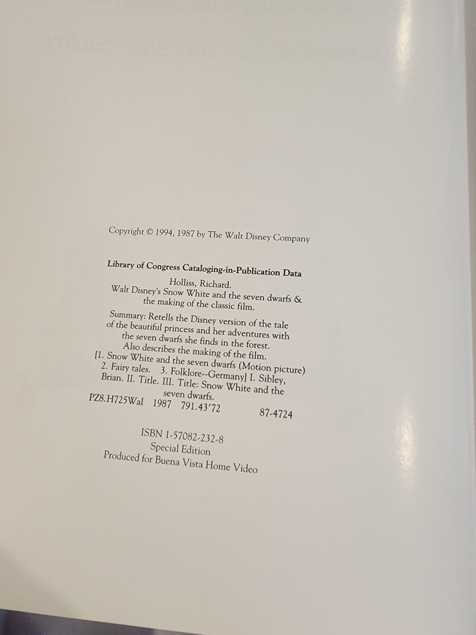 <span;>WALT DISNEY's MASTERPIECE SNOW WHITE AND THE SEVEN DWARFS Film Making Book 1994, book in very good condition. Dust cover has a tear at the top.