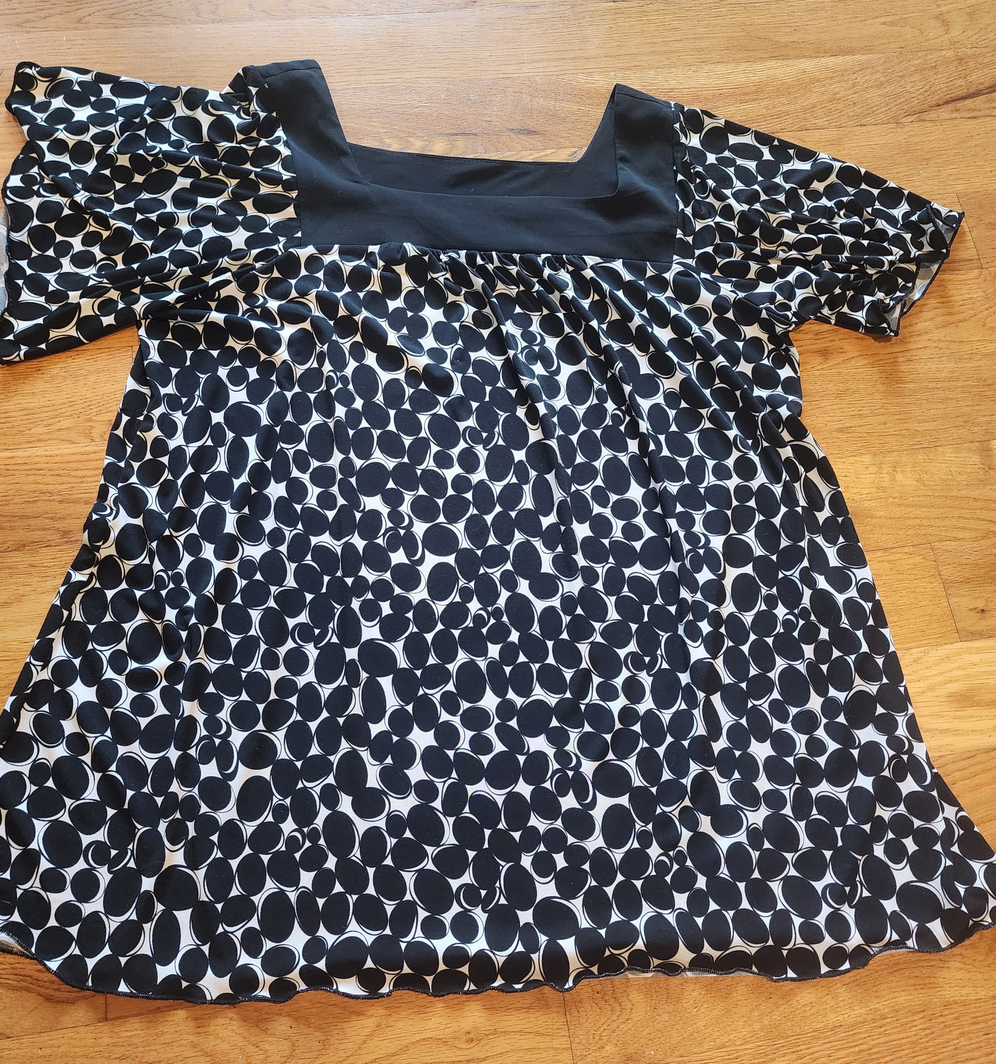 <span;>Womens Plus Size 1X Top Easy Care geometric Print Tunic, in good condition. Tag has been cut out. Measurements from pit to pit 24" wide from top to bottom 29" long. This has some stretch to it and not stiff.
